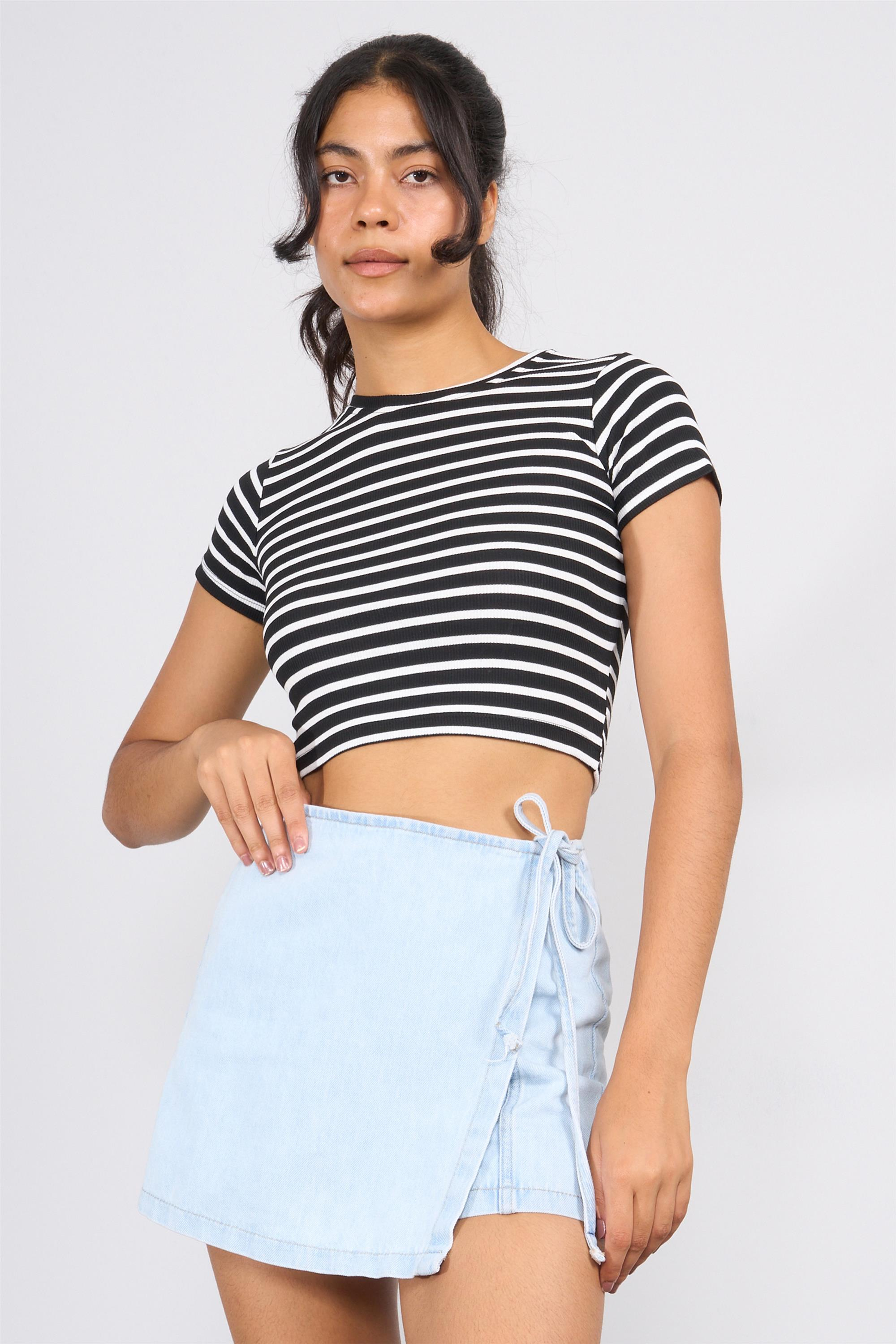 Aksoy Y25 550-22 Sıyah-Beyaz Kadın Cızgılı Kaskorse Crop Bady (09.01.19.50018)