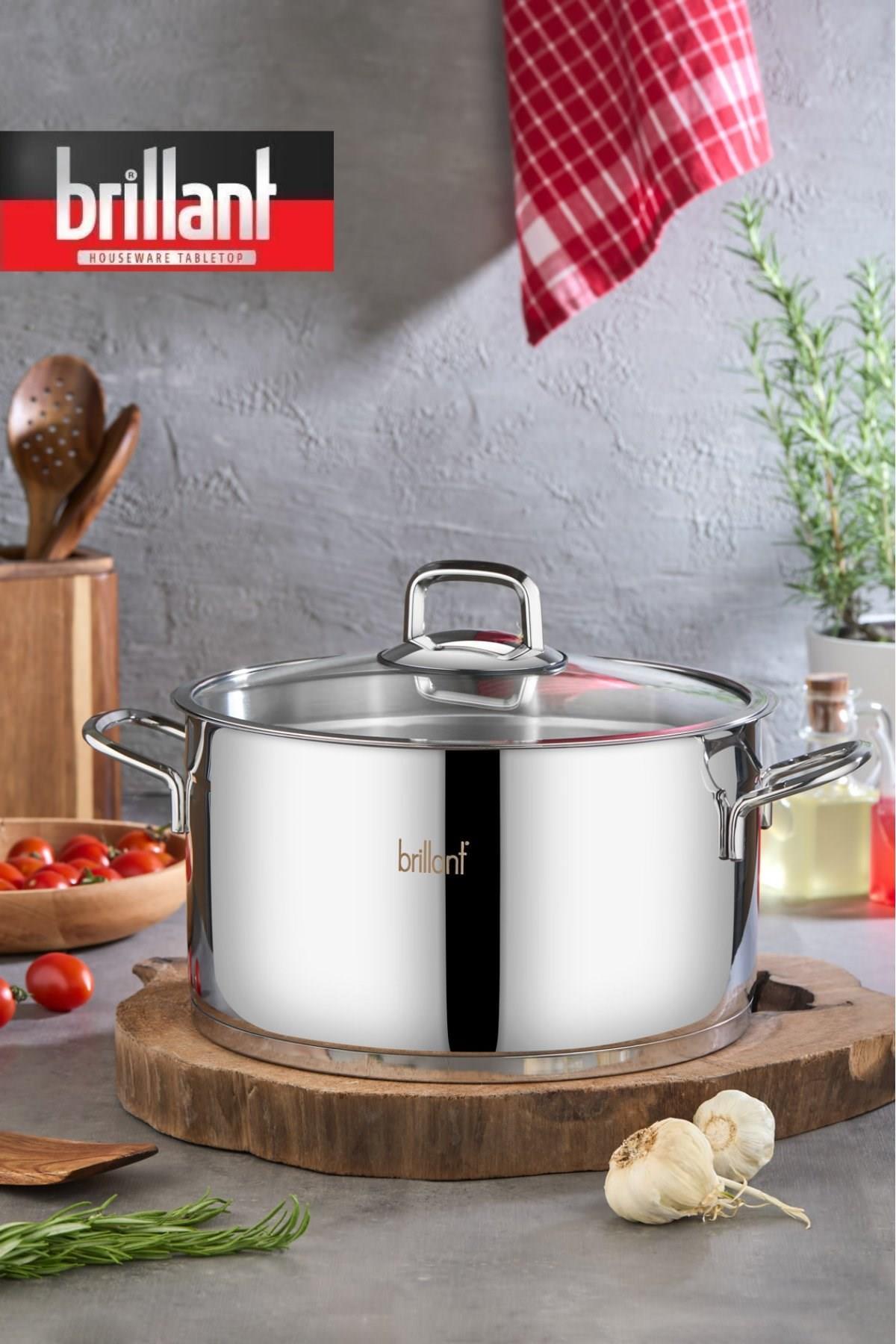 Üstün Kalite, Şık Tasarım!Brillant Queen çelik tencere, 304 kalite 18/10 paslanmaz çelikten üretilmiş olup hem dayanıklılığı hem de zarif görünümü ile mutfağınıza değer katar.