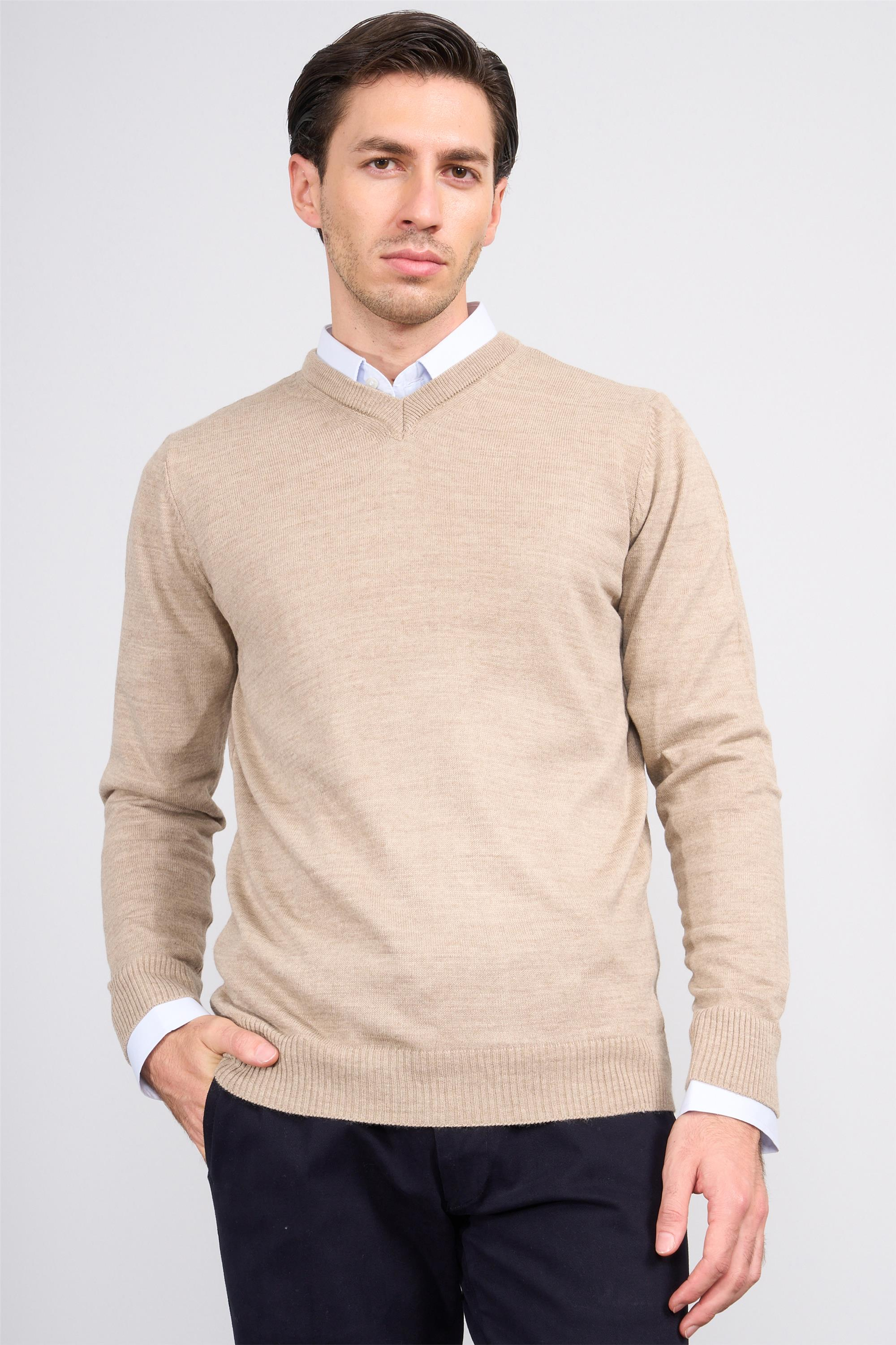 C.K 3176 Mentality Erkek V Yaka Triko Basic Bej