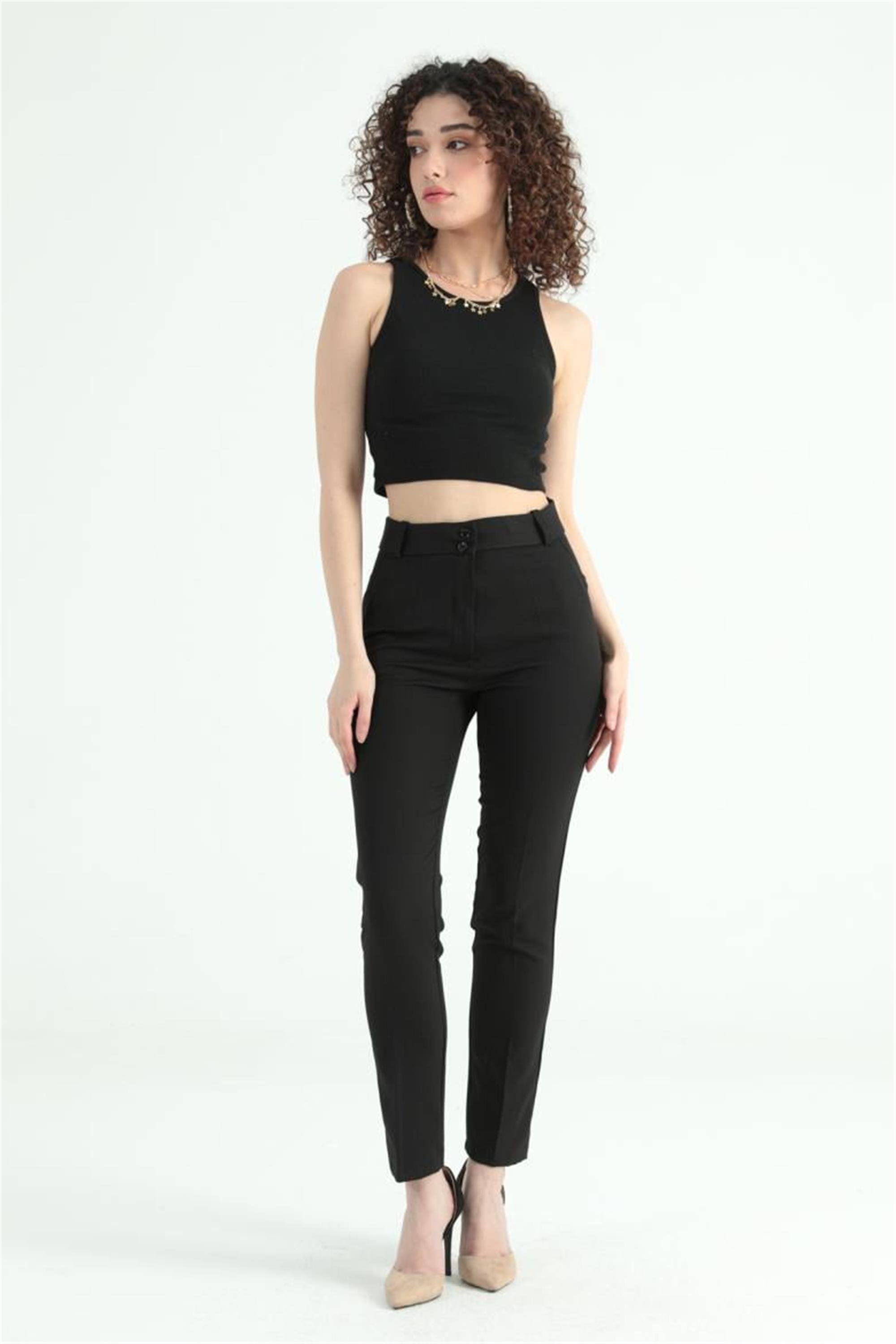 Canseven 1022 Siyah Kadın Yüksek Bel Kalem Kesim Uzun Boy Cigarette Kumaş Pantolon