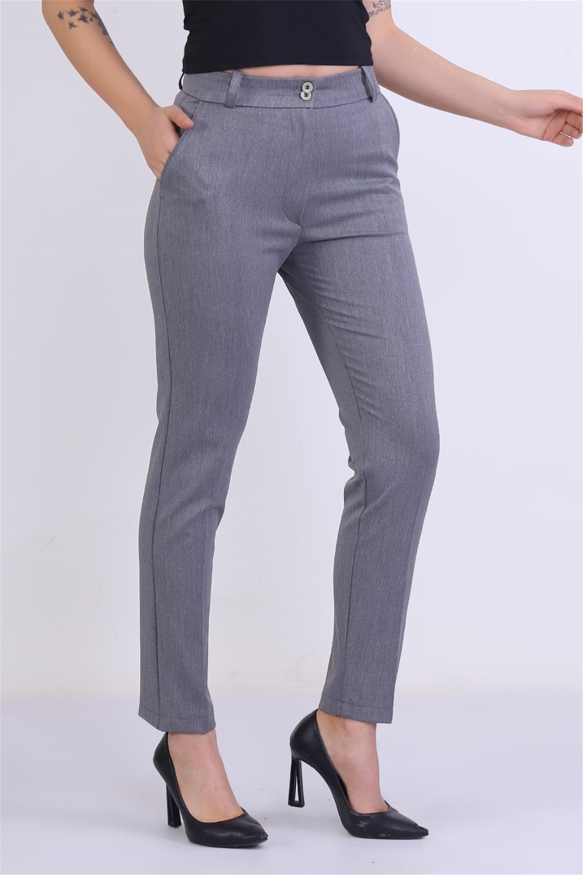 Canseven K26 1019 Fume Kadın Yuksek Bel Kalem Kesım Uzun Boy Cıgarette Kumas Pantolon