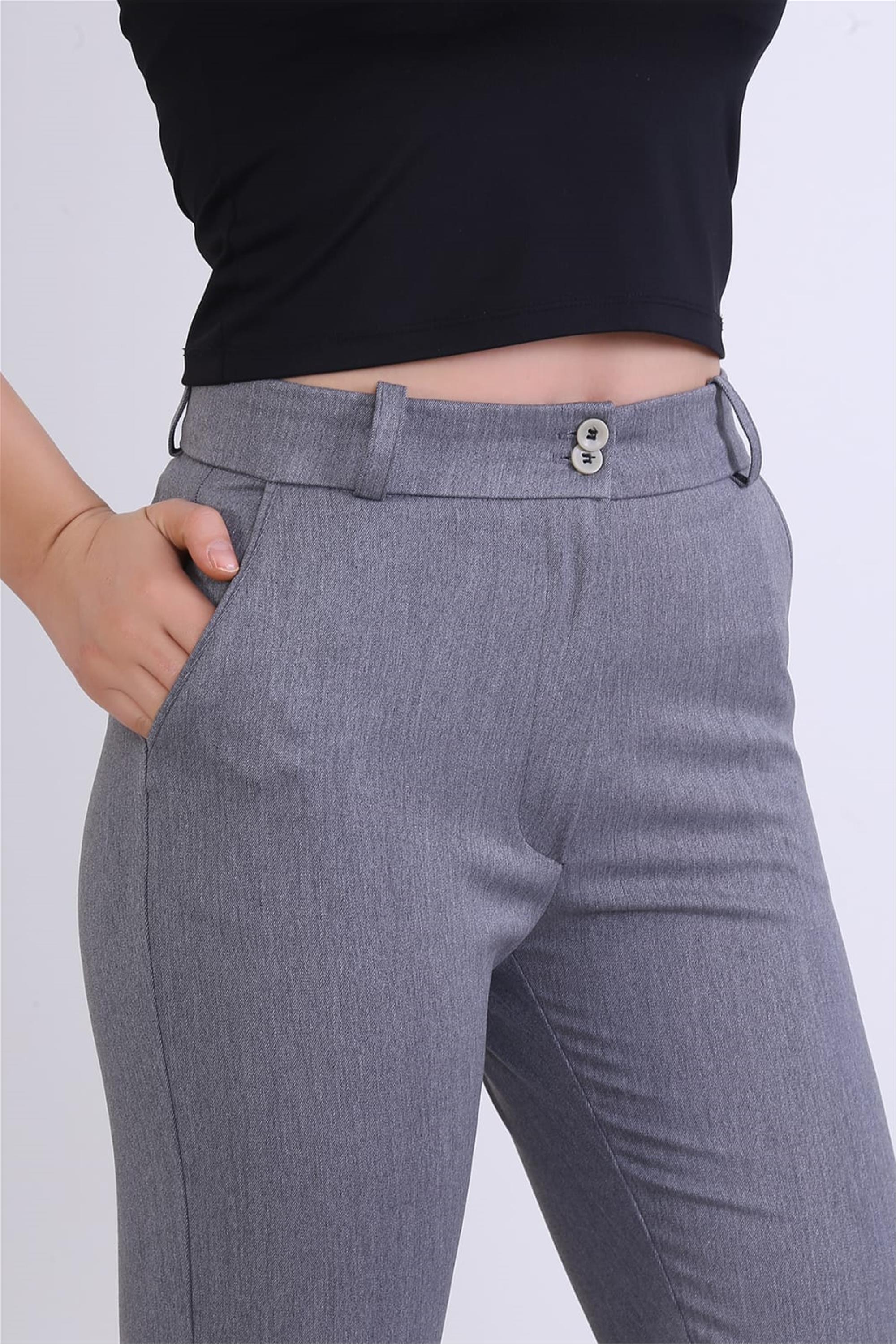Canseven K26 1019 Fume Kadın Yuksek Bel Kalem Kesım Uzun Boy Cıgarette Kumas Pantolon