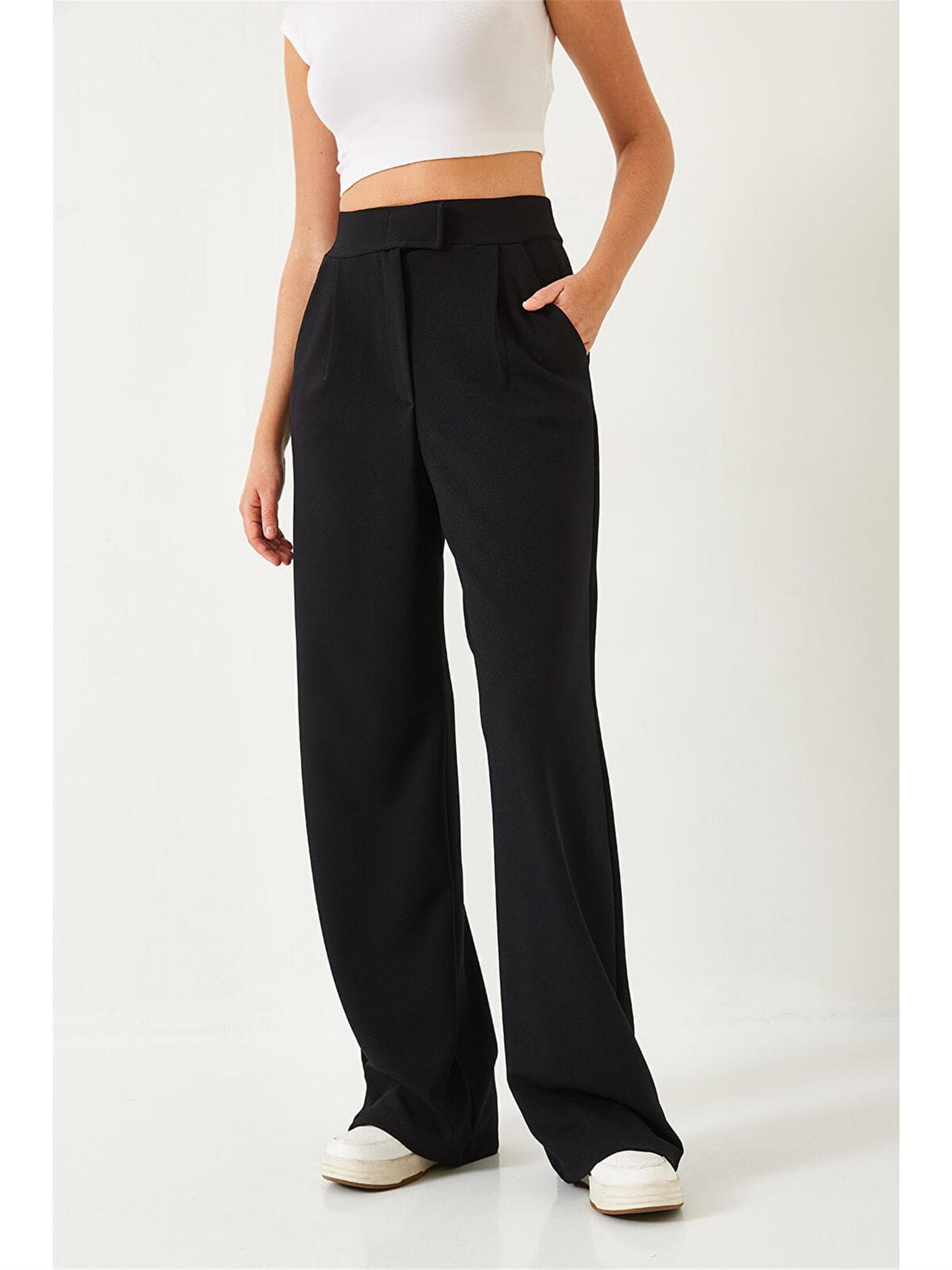 Canseven K26 1052 Sıyah Kadın Yuksek Bel Lıkralı Skuba Kumas Cırtlı Palazzo Pantolon (09.01.27.70152)