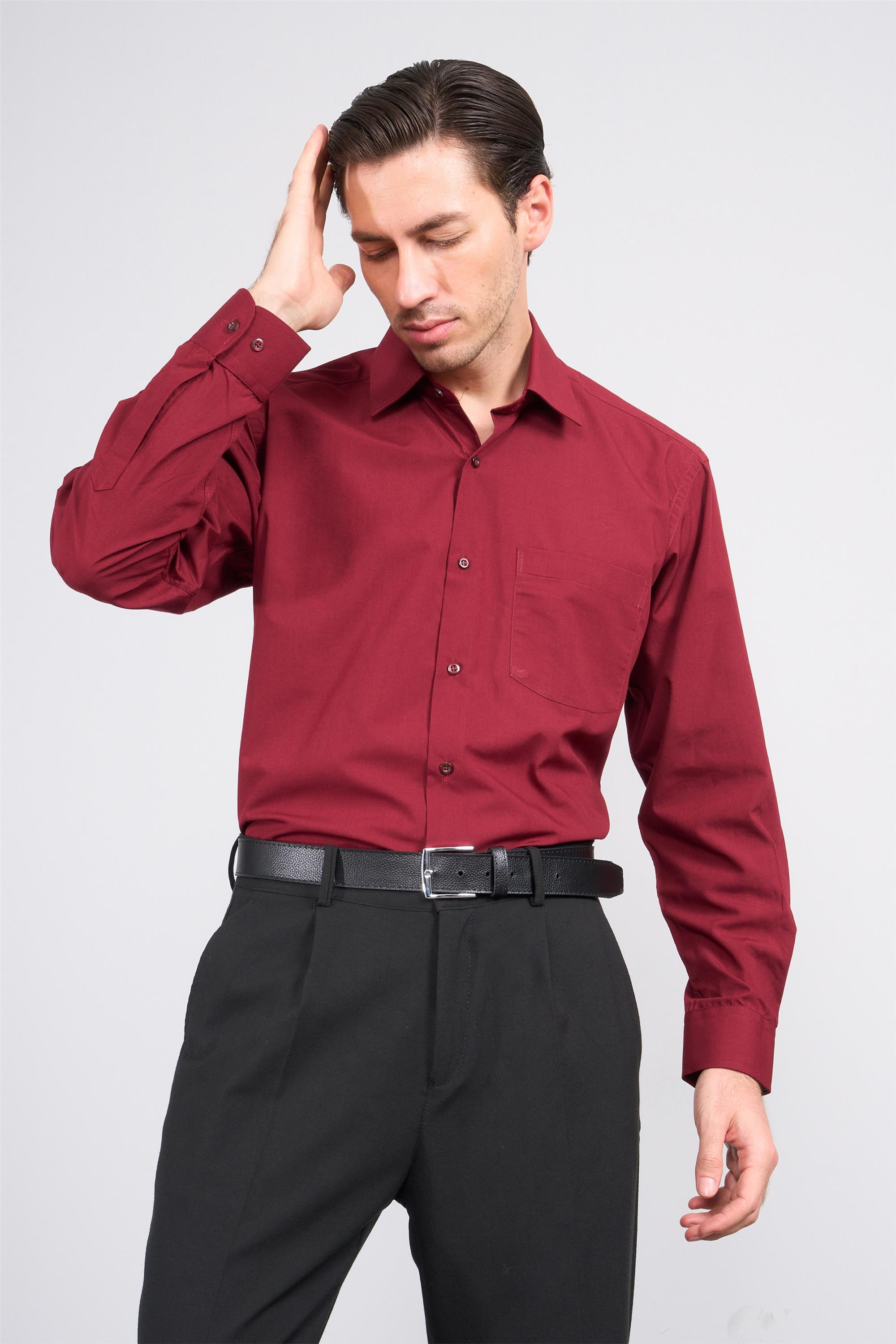 Çetinkaya 210 D Erkek T.COTTON Uzun Kol Bordo Gömlek (08.01.07.91941)