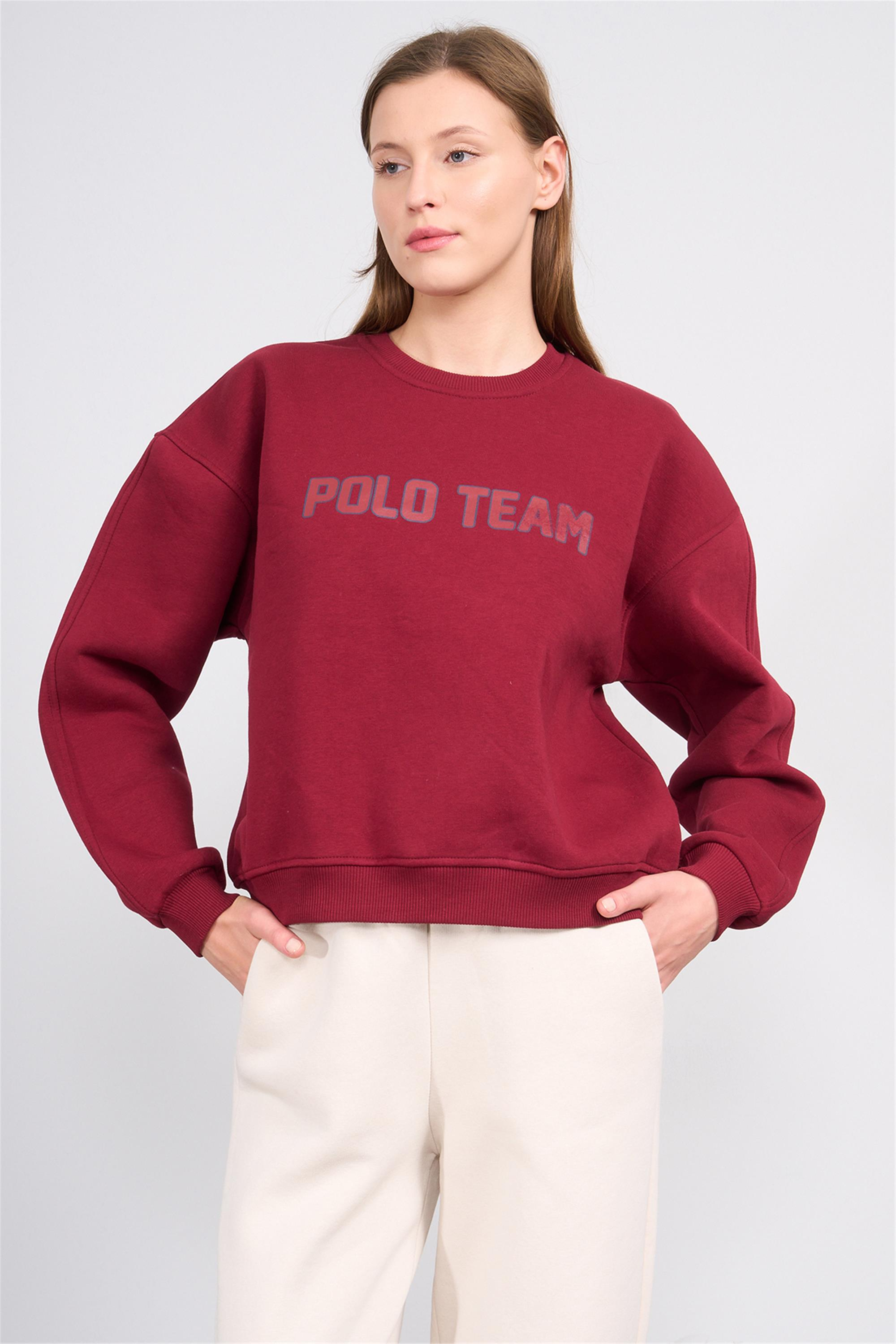 Çetinkaya Chester Pıolo 8515 Kadın Bisiklet YakaBaskılı Sweat Bordo (09.05.23.10423)