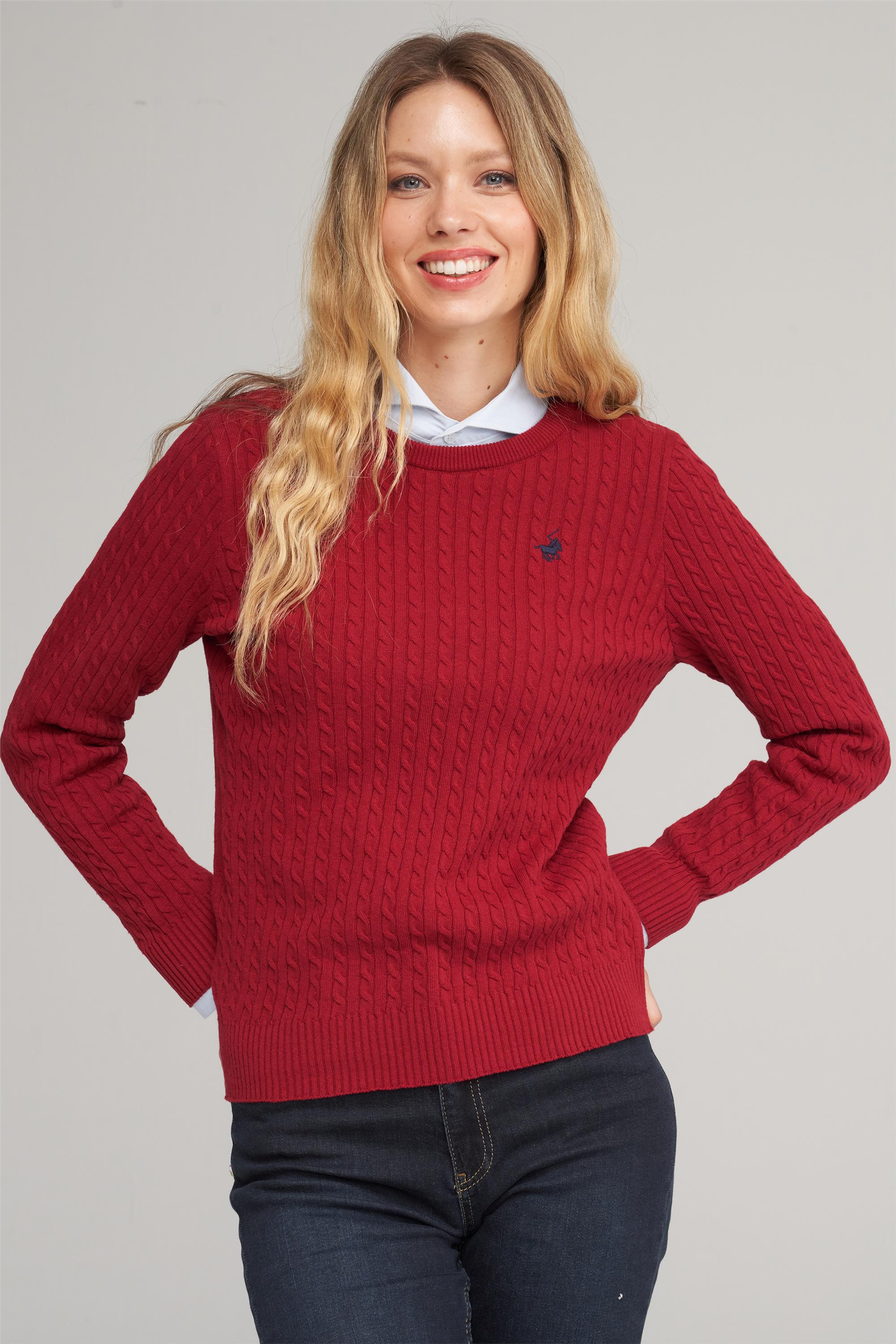 Çetinkaya Chester Polo 5249 Kadın Bisiklet Yaka Akrilik Saç Örgü Triko Kazak Bordo (09.05.21.10458)