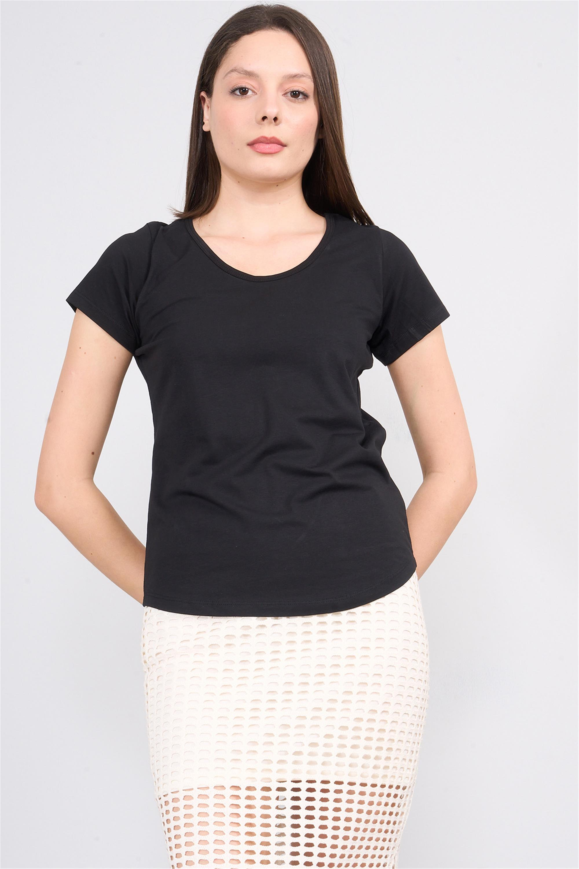 Çetinkaya Fithit 8461 Bayan 30/1 Compact Penye Süprem Spagetti Detaylı T-shirt Siyah (09.05.24.3173)