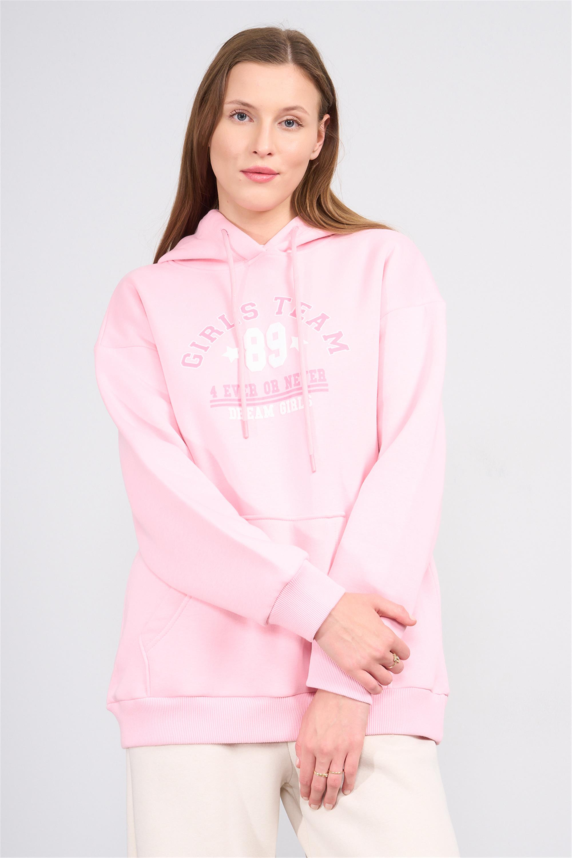 Çetinkaya Fithit 8575 Kadın Kapüşonlu Oversize Baskılı Sweatshirt Pembe (09.05.23.10443)