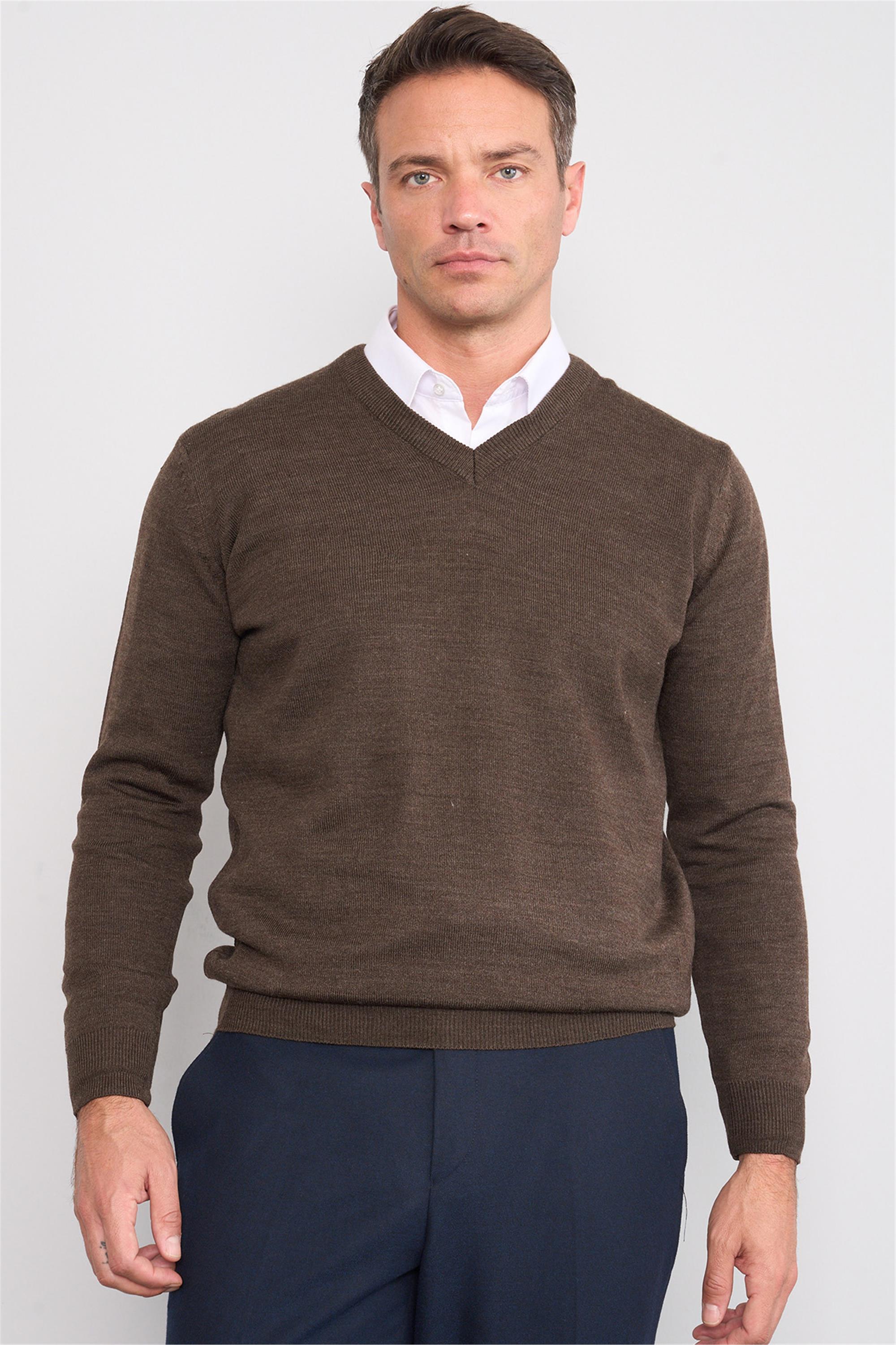 Çetinkaya Mentality 3176 V Yaka Kahverengi Triko