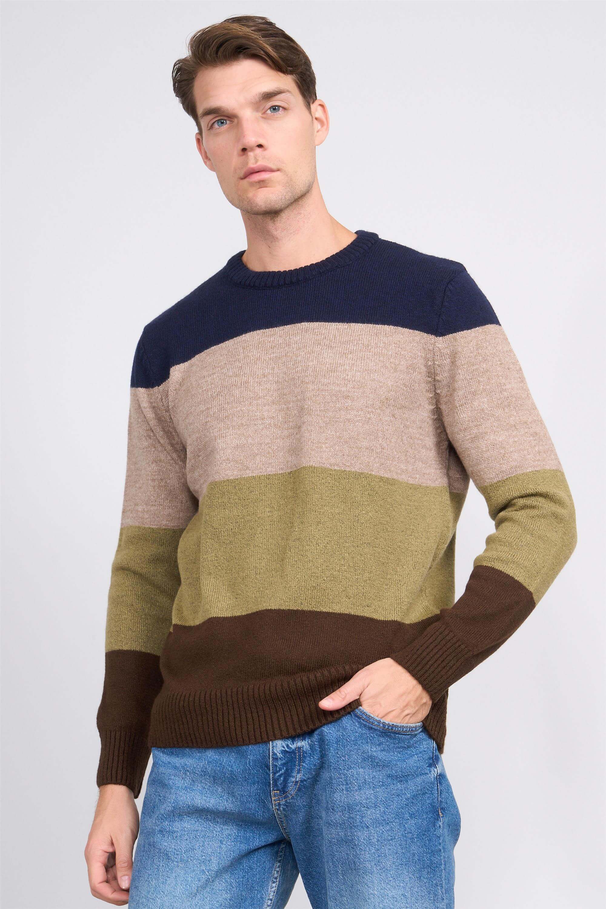 Çetinkaya Mentality 5270 Erkek Bisiklet Yaka Bloklu Akrilik Triko Lacivert (08.05.15.40032)