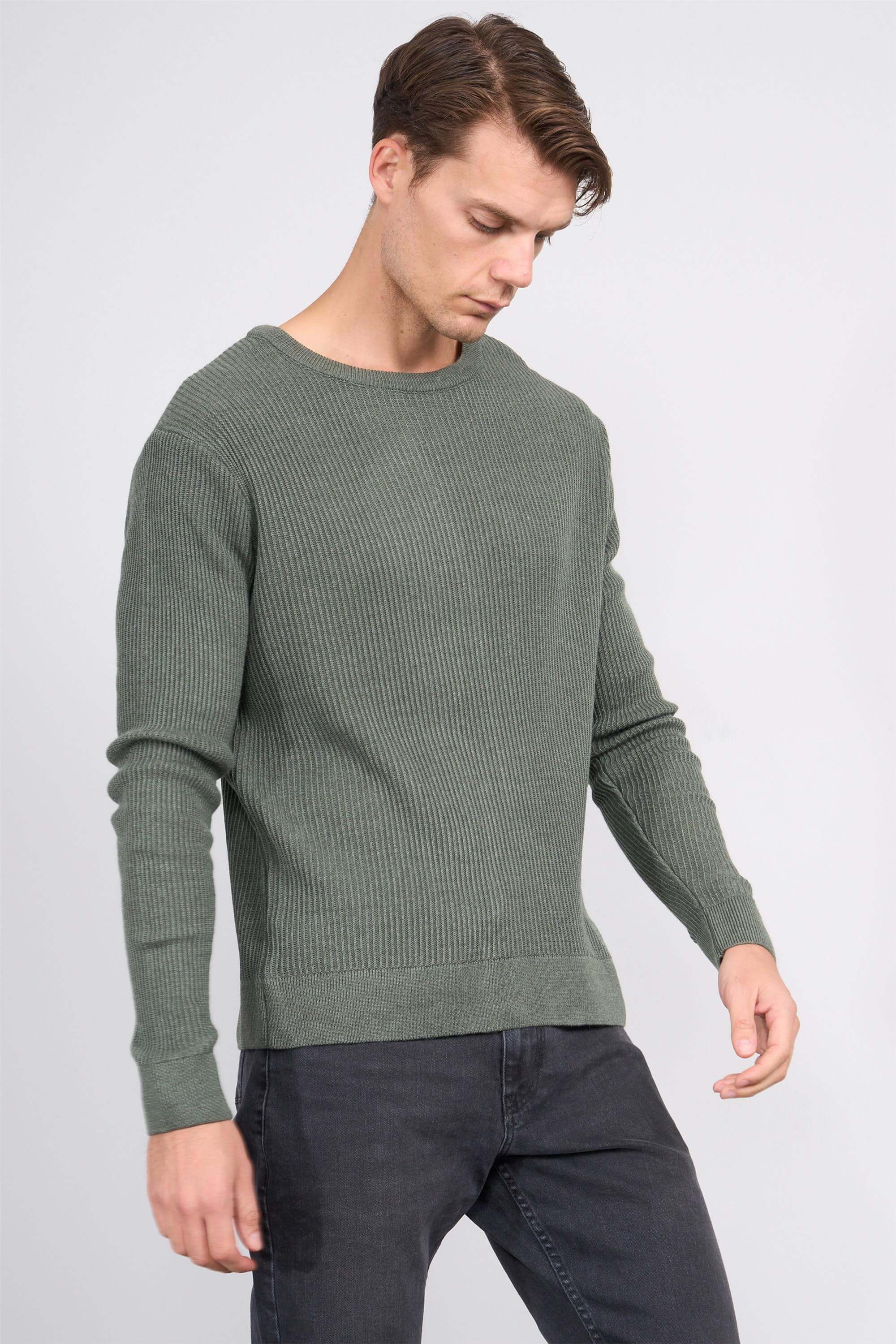 Çetinkaya Mentality 5295 Bisiklet Yaka 1/18 Akrilik Regular Triko Açık Haki