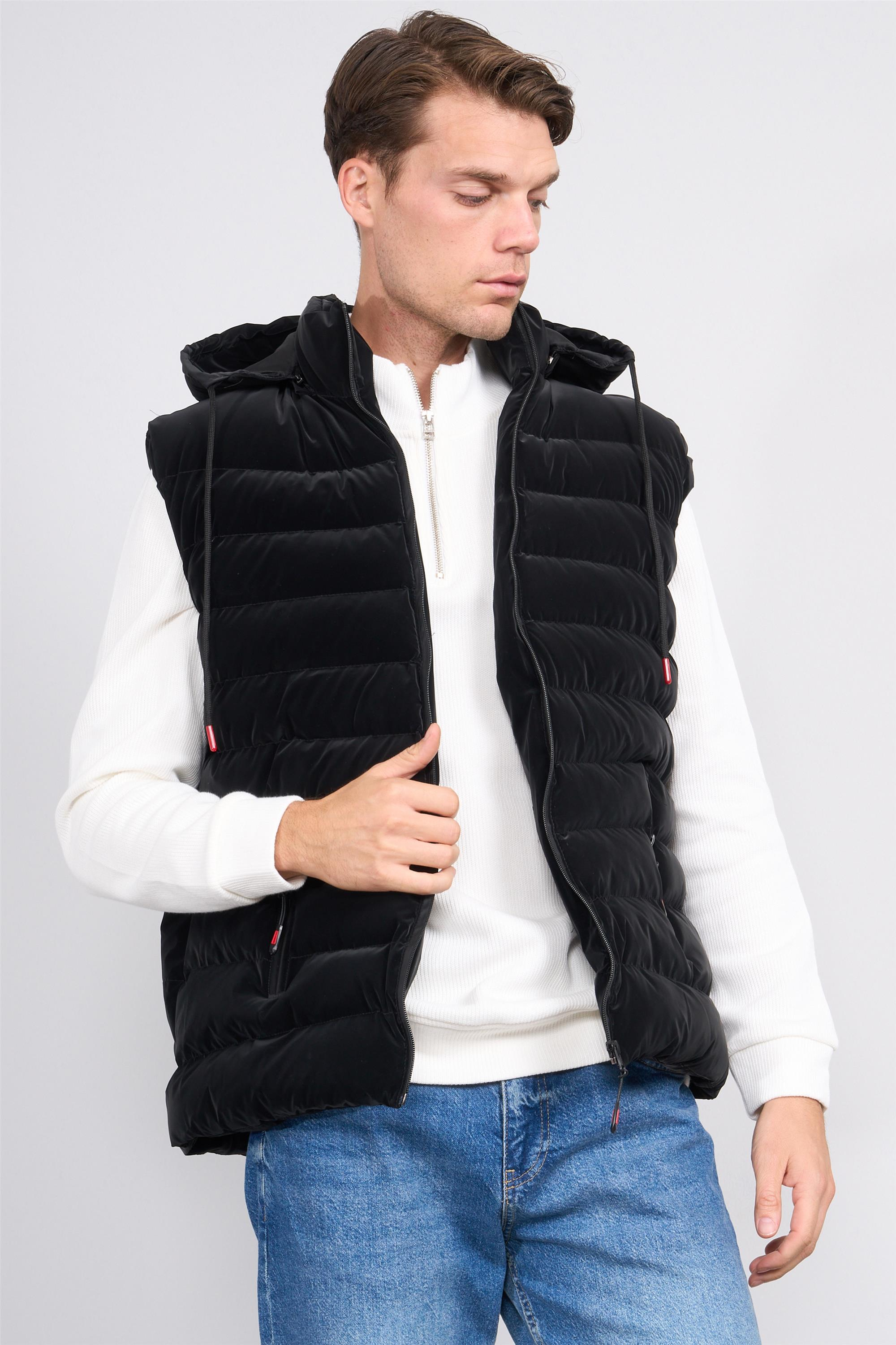 Çetinkaya Mentality 7927 Şişme Yelek Kadife Görünümlü Regular  Siyah