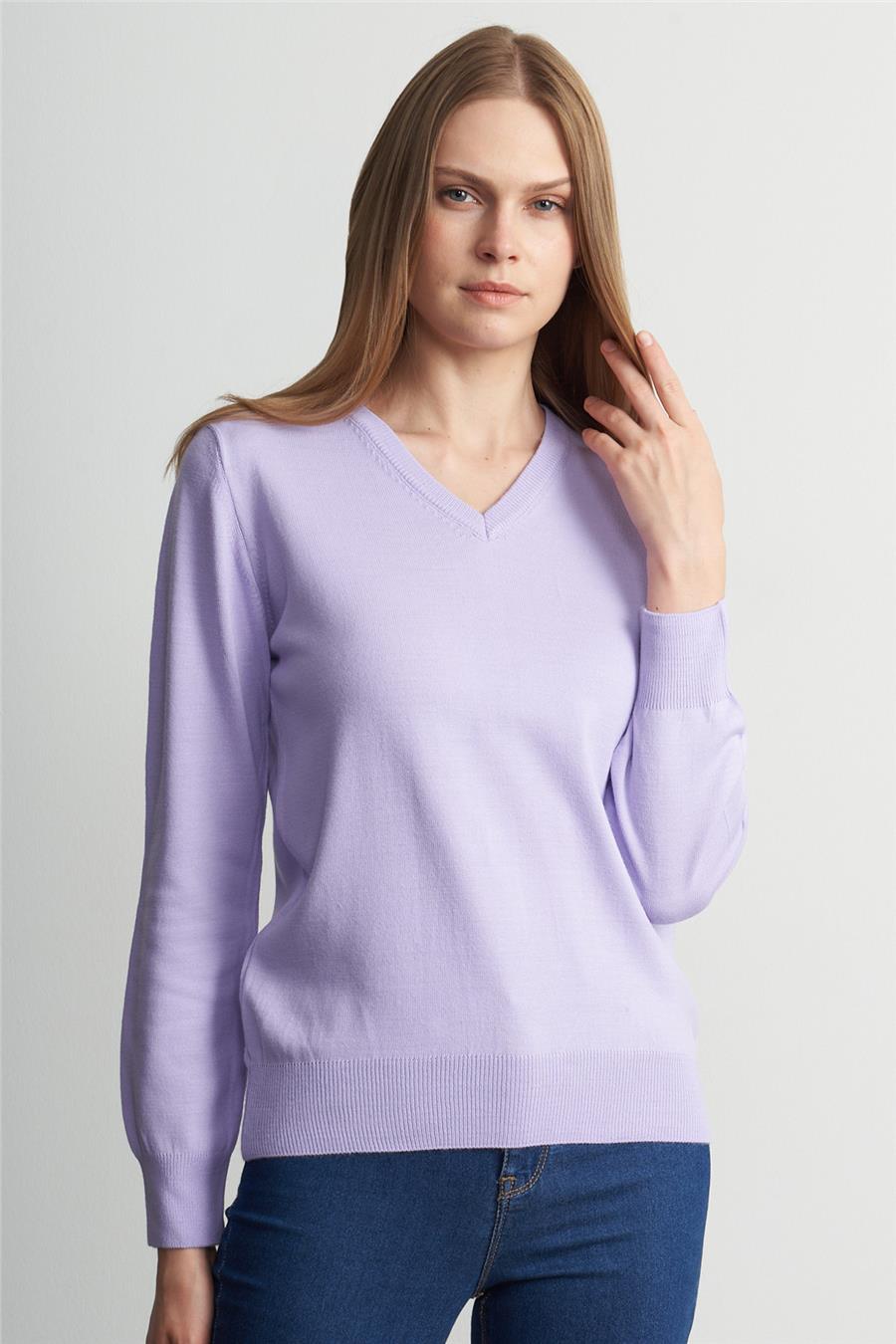 Çetinkaya Miramira Kadın V Yaka Lila Kazak (09.01.11.980105)