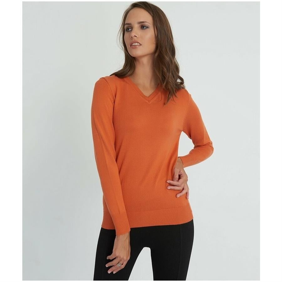 Canlı turuncu rengi ile dikkat çekici bir görünüm sağlar; enerjik ve stil sahibi kombinlerin vazgeçilmez parçasıdır. Basic silueti sayesinde günlük giyimde rahatlıkla tercih edilebilecek temel parça olarak öne çıkar. Kiremit rengiyle farklı renk paletleriyle kolayca kombinlenebilir; çok yönlülük sunar.