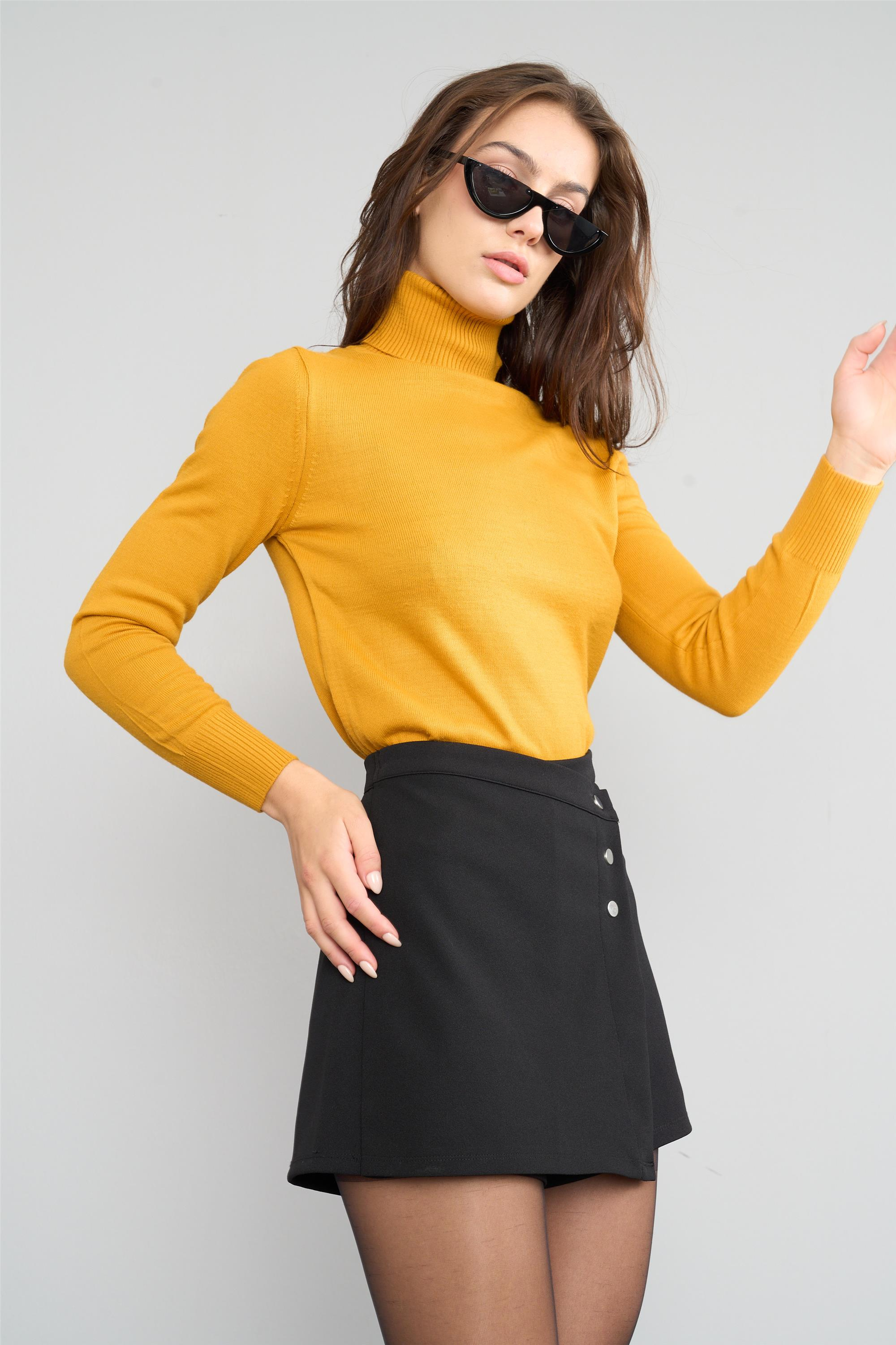 Çetinkaya Miyamira Balıkçı Yaka Hardal Kazak