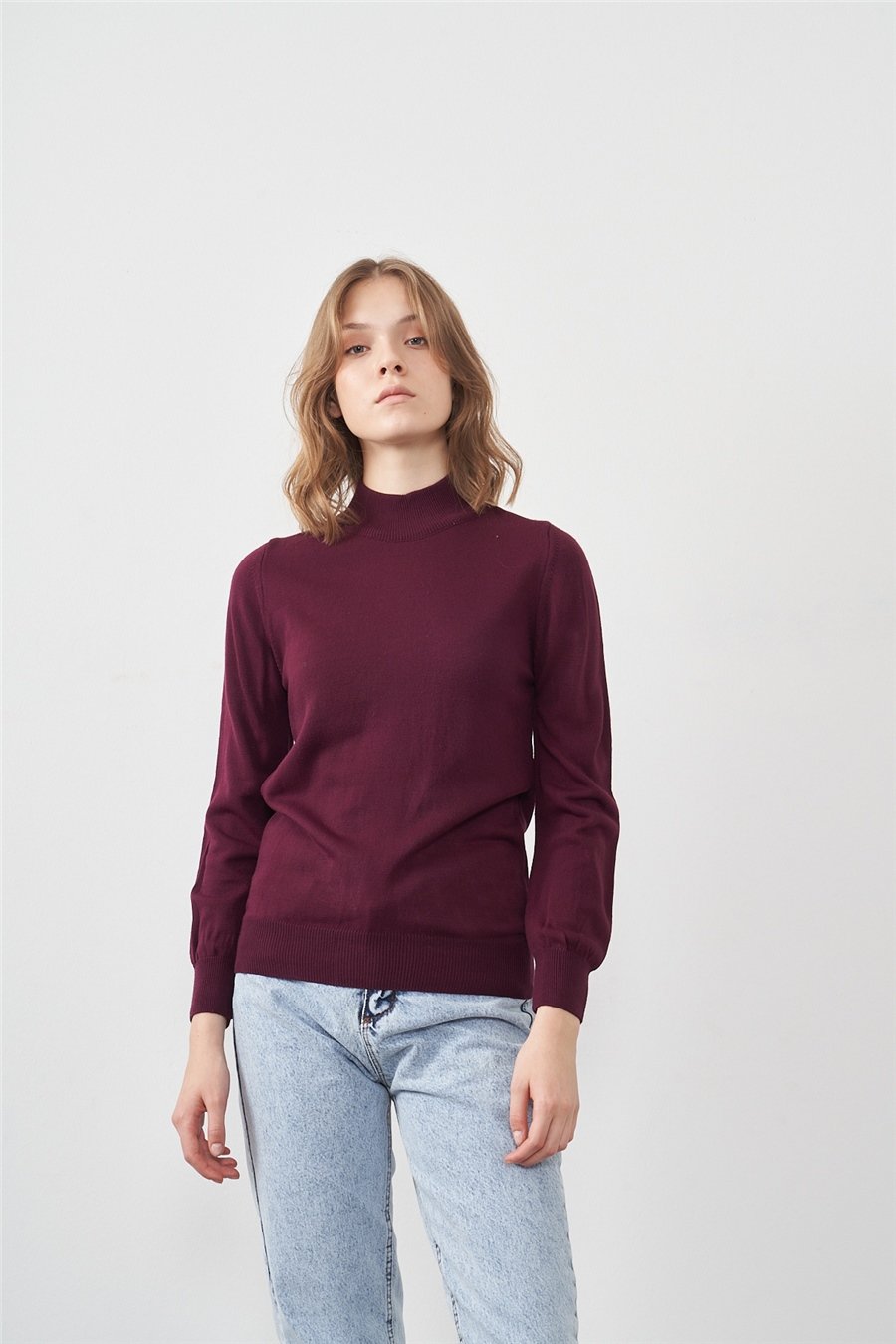 Çetinkaya Miyamira 2254 Kadın Dik Yaka Mor Triko Kazak (09.01.11.980439)