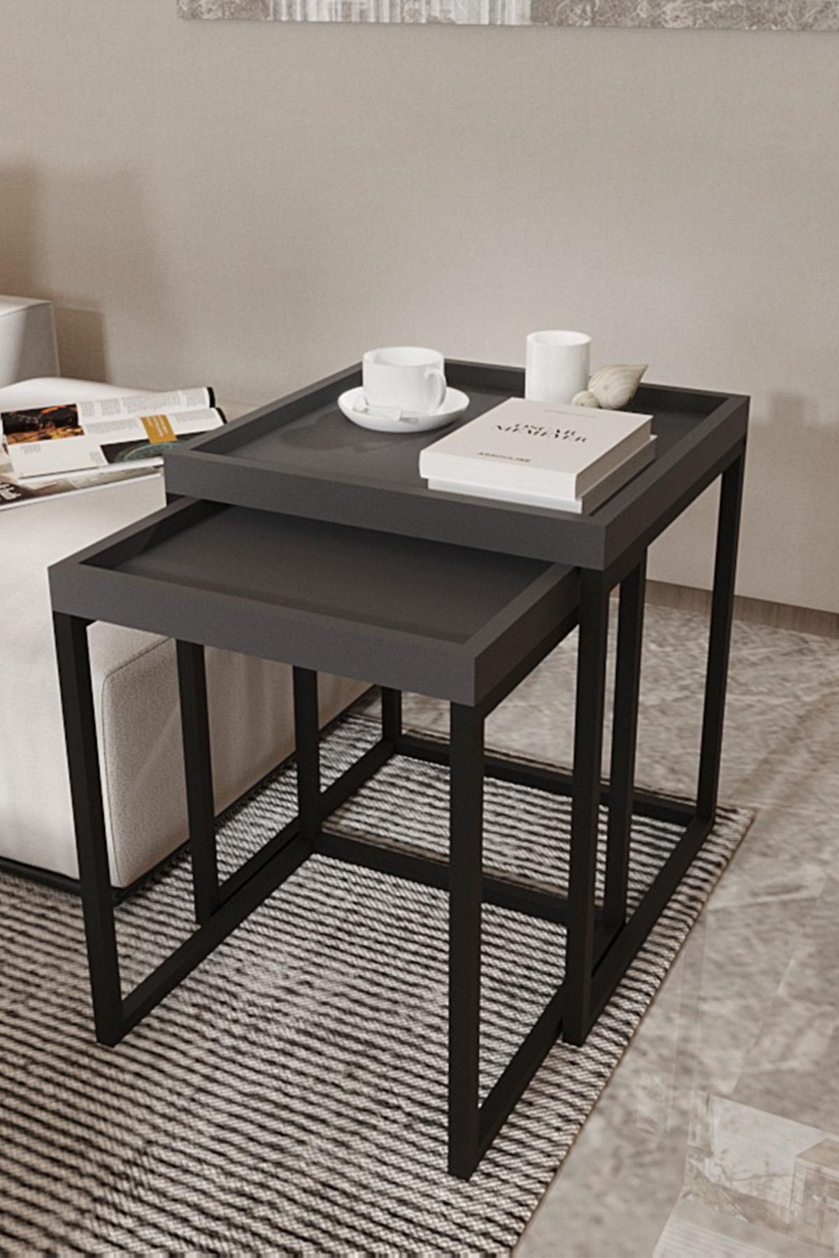 Ahşap panel ve metalin birleşimiyle dayanıklı ve uzun ömürlü bir sehpa setidir.