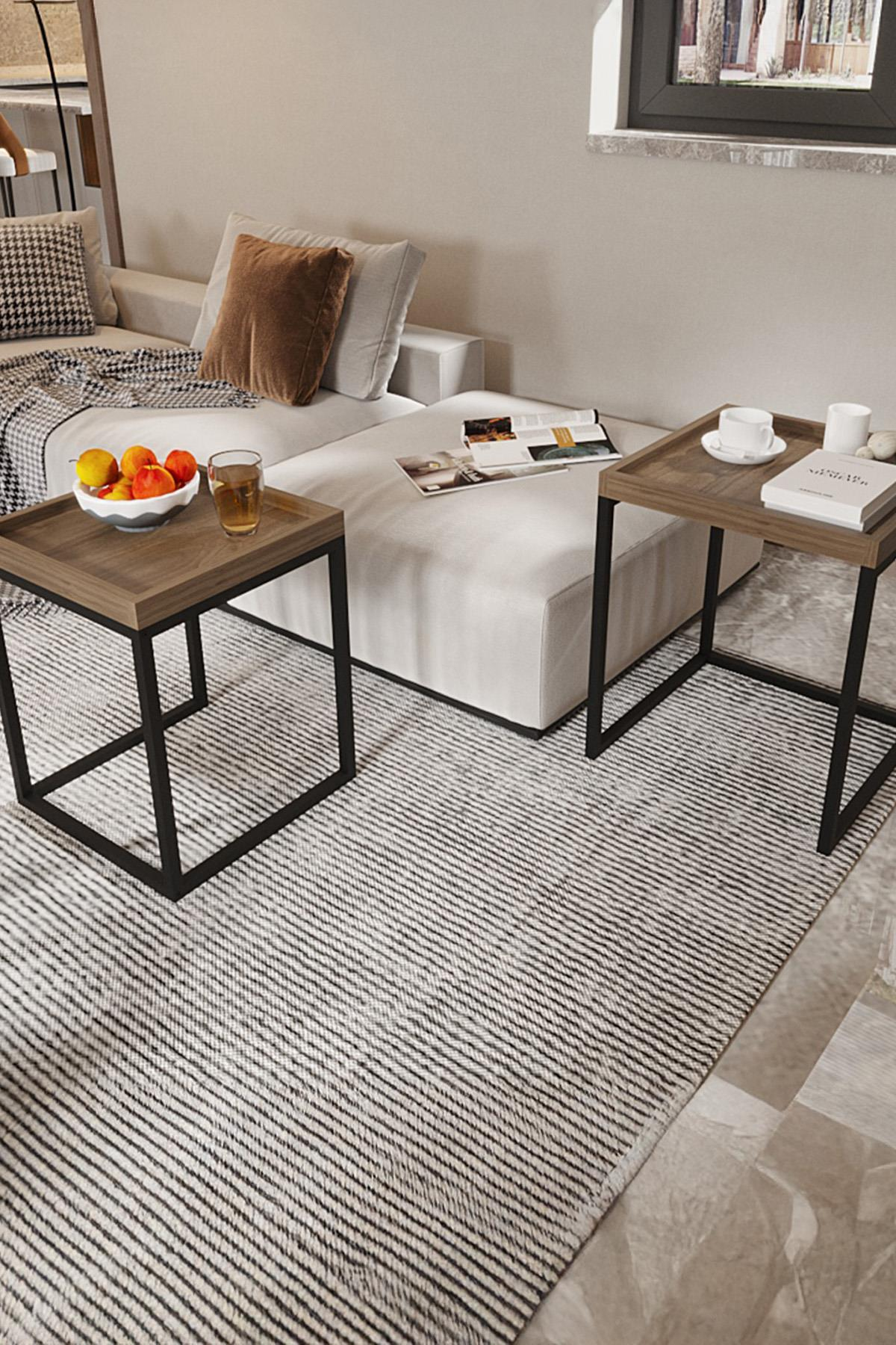 Ahşap panel ve metalin birleşimiyle dayanıklı ve uzun ömürlü bir sehpa setidir.
