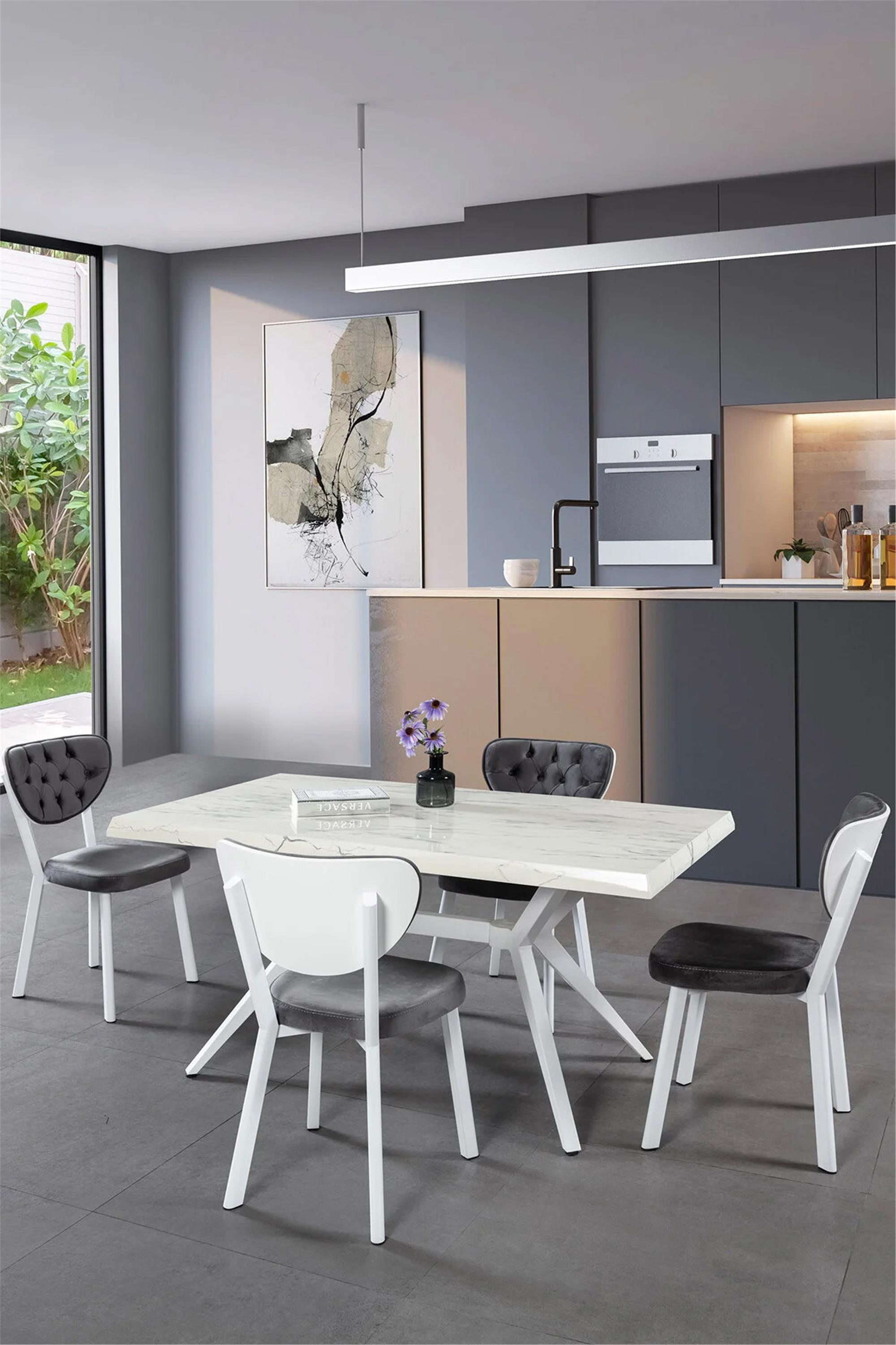 Tahmini sevk süresi 10-15 iş günüdür. Nakliye Durumu: Ürün kata teslim edilecektir.(Daire içine teslim edilmemektedir) Köylere teslimat yapılmamaktadır bazı şehirler ve şehirlerin ilçelerinde sorunlar olmaktadır ürün satın almadan müşteri temsilcilerimizle irtibata geçebilirsiniz veya size en yakın şehir veya ilçe merkezlerinden ürünlerinizi teslim alabilirsiniz Hasar tespit tutanağı olmayan ürünlerle ilgili iade değişim işlemleri yapılamamaktadır. Takım İçeriği: 1 Masa + 4 Sandalye Masa Üst Tabla Malzemesi: Lak Panel Masa Üst Tabla Renk/Deseni: Marmo Masa Ayak Rengi: Beyaz Masa Ayak Malzemesi: Metal Sandalye Kumaş İçeriği: Barut Kumaş Sandalye İskelet Malzemesi: Metal Ölçüler:Masa Ölçüleri:Genişlik: 160 cmDerinlik: 90 cmYükseklik: 75 cmSandalye Ölçüleri:Genişlik: 44 cmDerinlik: 44 cmYükseklik: 87 cmÖzel Ölçü:Ürün ölçüleri standarttır, özel ölçü seçeneği bulunmamaktadır.