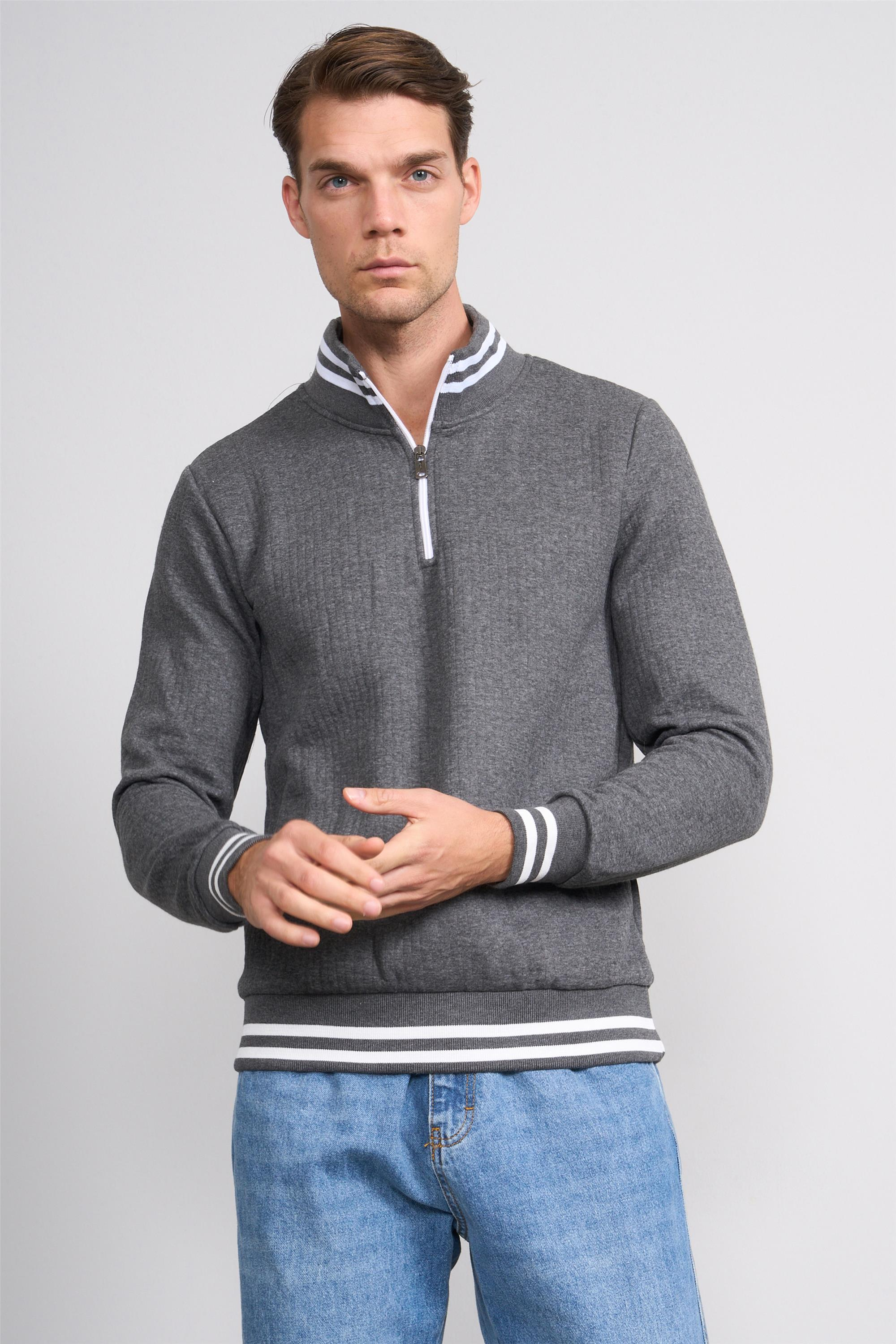 Fbı 95101 25 Antrasıt Erkek Yarım Fermuarlı Sweatshırt (08.01.17.50766)