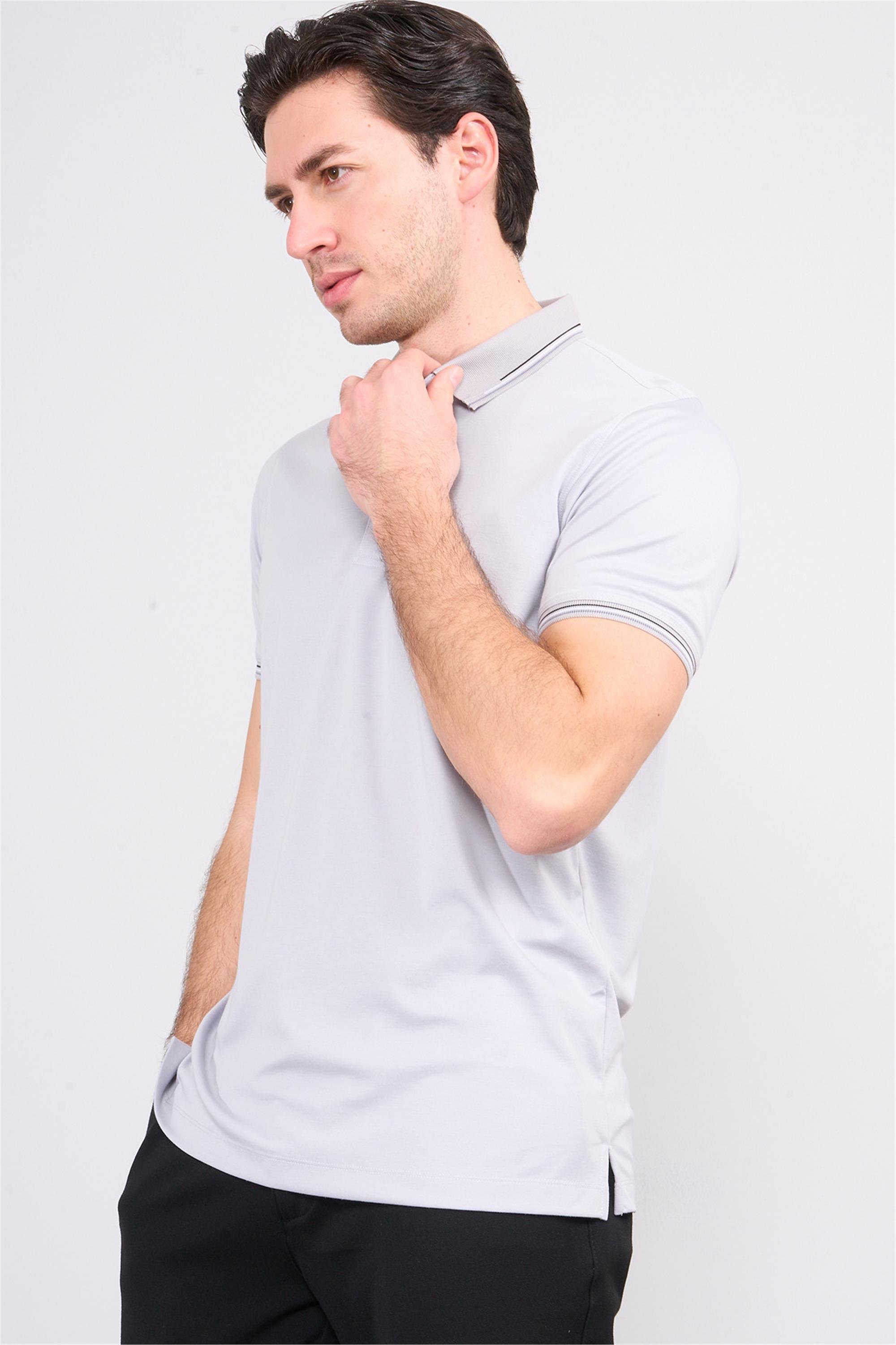 Halifaks A.Gri Erkek 12698 Düğmeli Eli Kuşaklı Polo Kısa Kol Etek Reçme T-Shirt (08.01.16.21011)