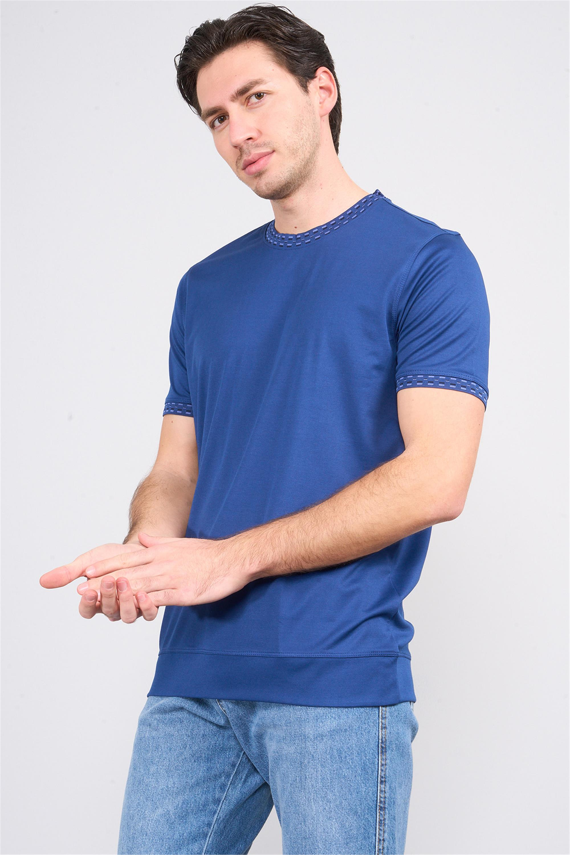 Halifaks A.Lacivert Erkek 12651 Trikolu Bısıklet Yaka Kısa Kol Etek Ribana Interlok T-Shirt