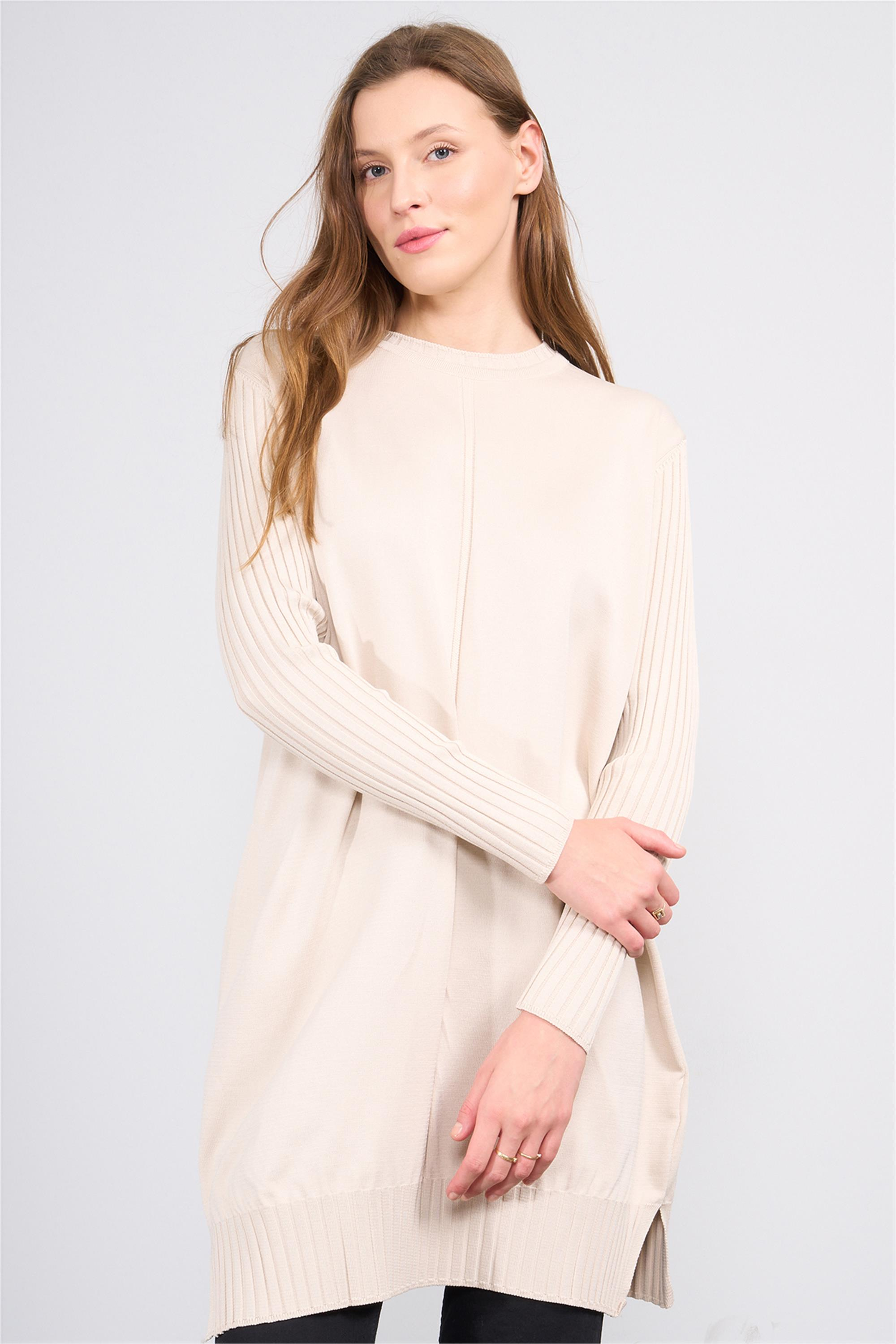 Hisset Nvl3191 Ekru Kadın Düz Triko Tunik (09.01.20.20280)