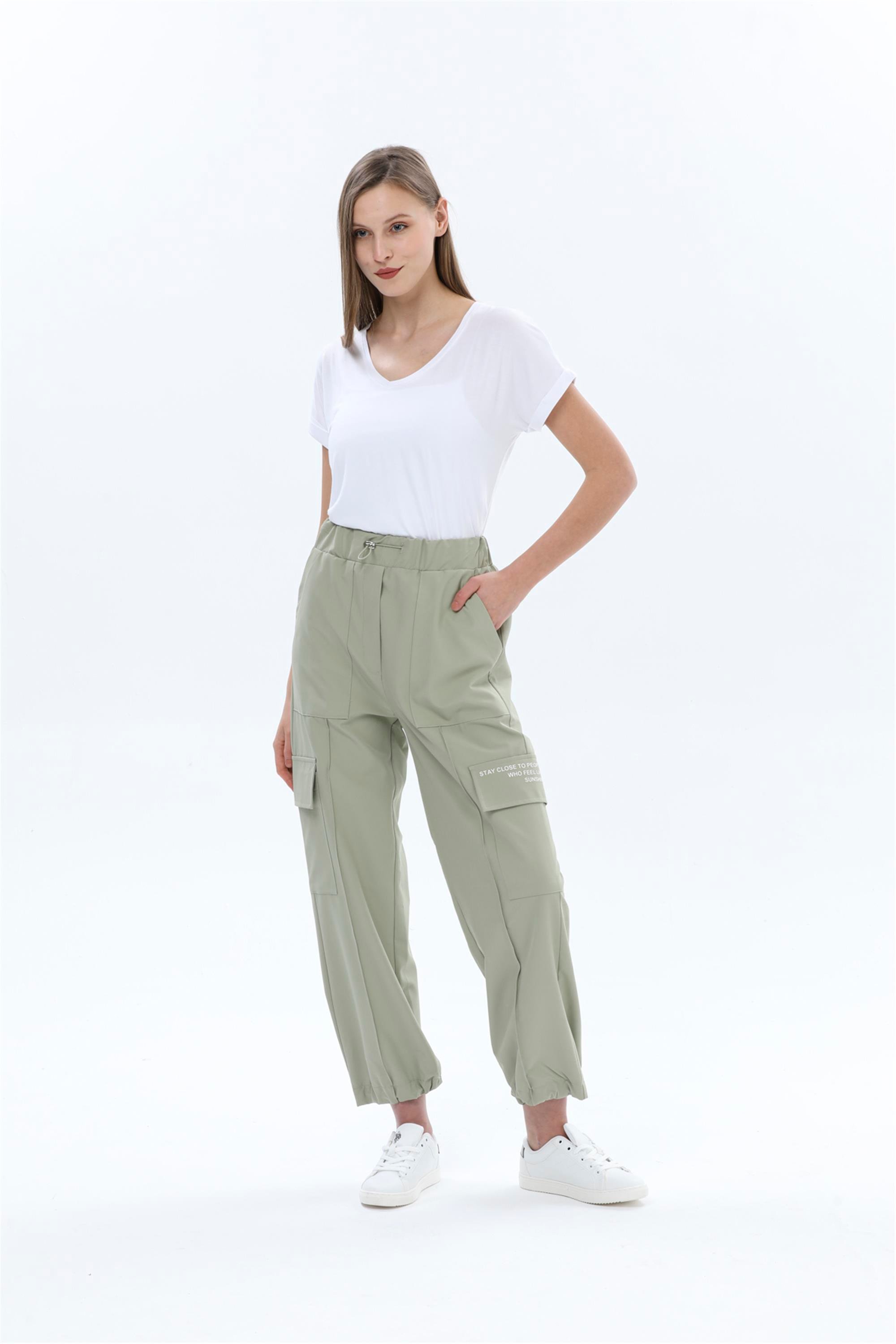 İkoll 0032383 989 Açık Haki Kadın Baskı Ve Nervürlü Kargo Pantolon (09.01.27.80586)