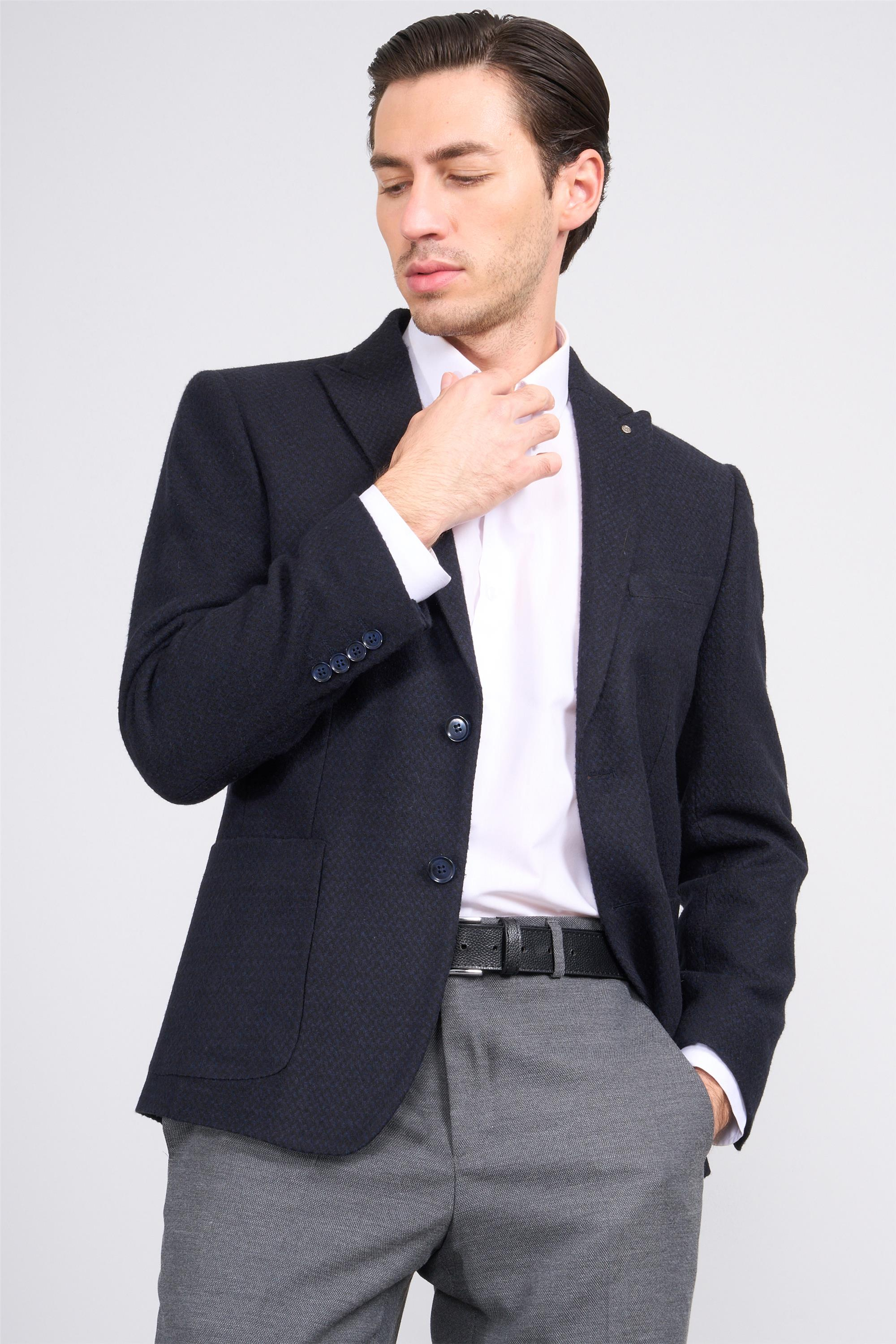 Kagı K26 Lacivert Erkek Lıvorno Slım Fıt Kase Ceket