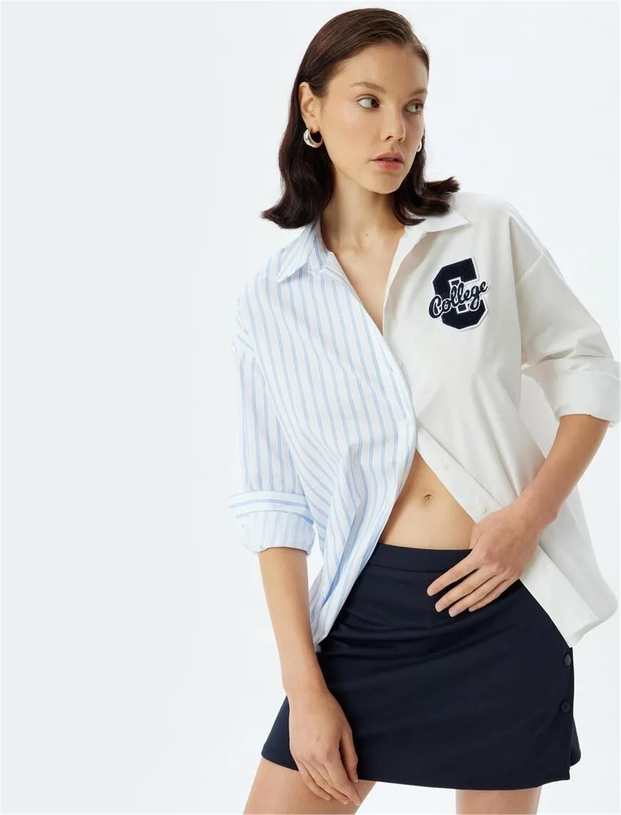Koton 5Wak60050Pw 6S5 Mavı Cızgılı Kadın Dokuma Uzun Kollu Gomlek