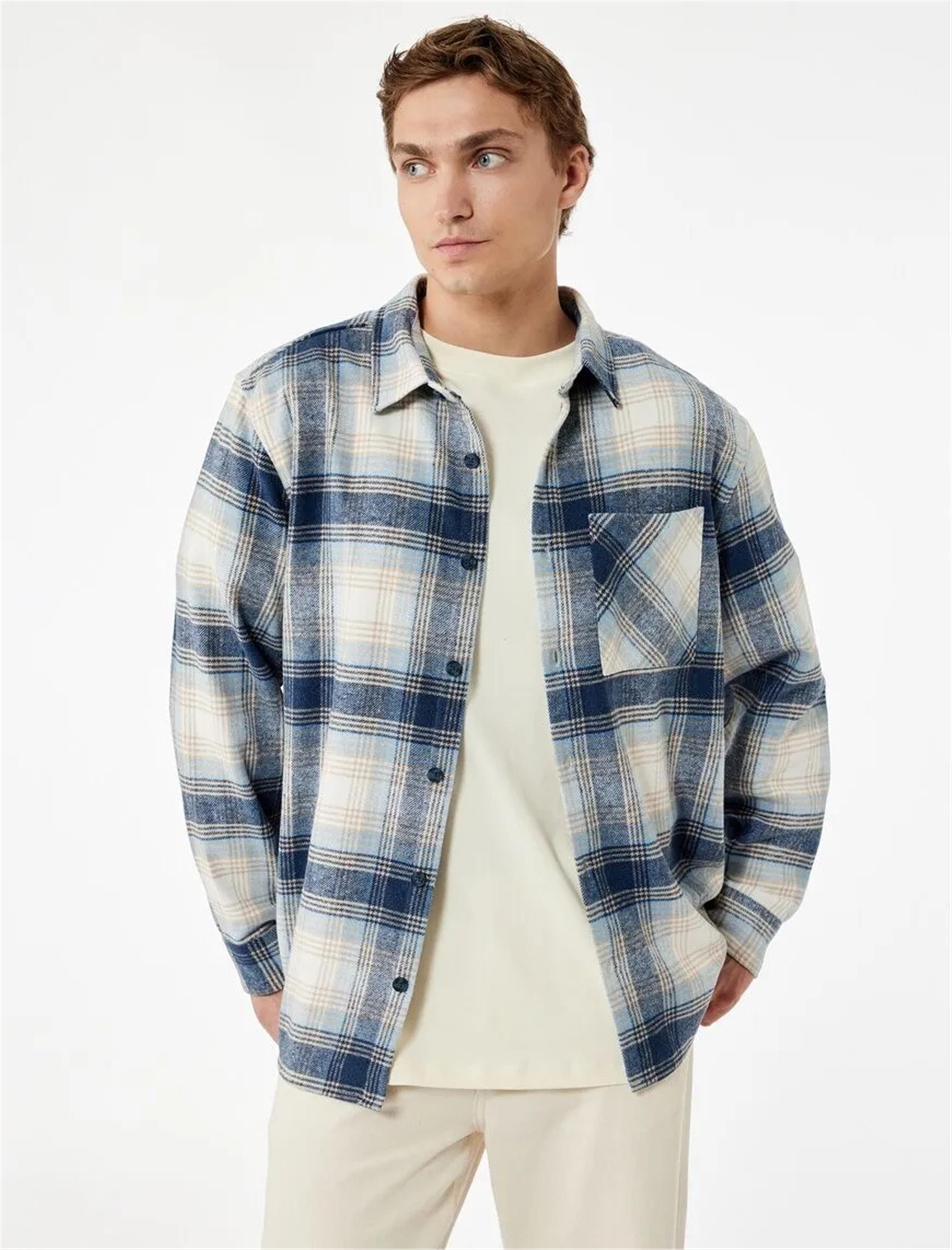 Koton K26 6Wam60063Hw 7C2 Lacıvert Ekoselı Erkek Akrılık Dokuma Uzun Kollu Gomlek (08.01.01.50570)