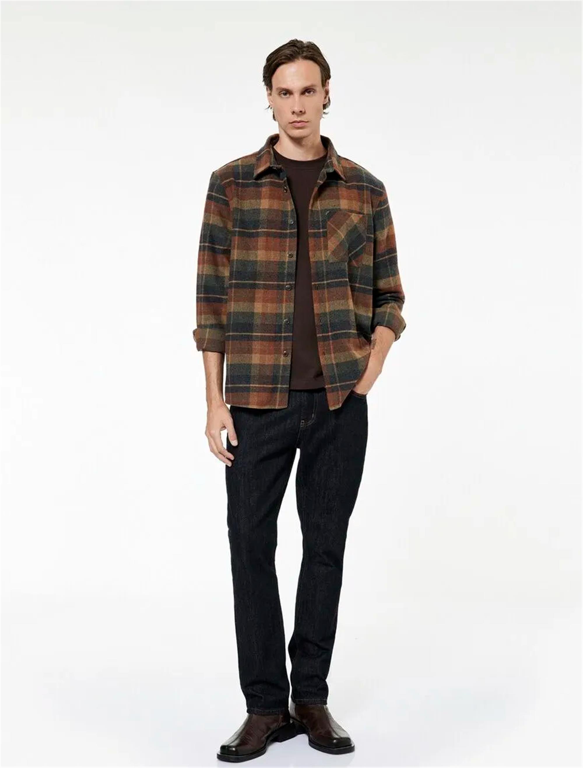Koton K26 6Wam60097Hw 2C1 Turuncu Ekose Erkek Akrılık Dokuma Uzun Kollu Gomlek (08.01.01.50575)