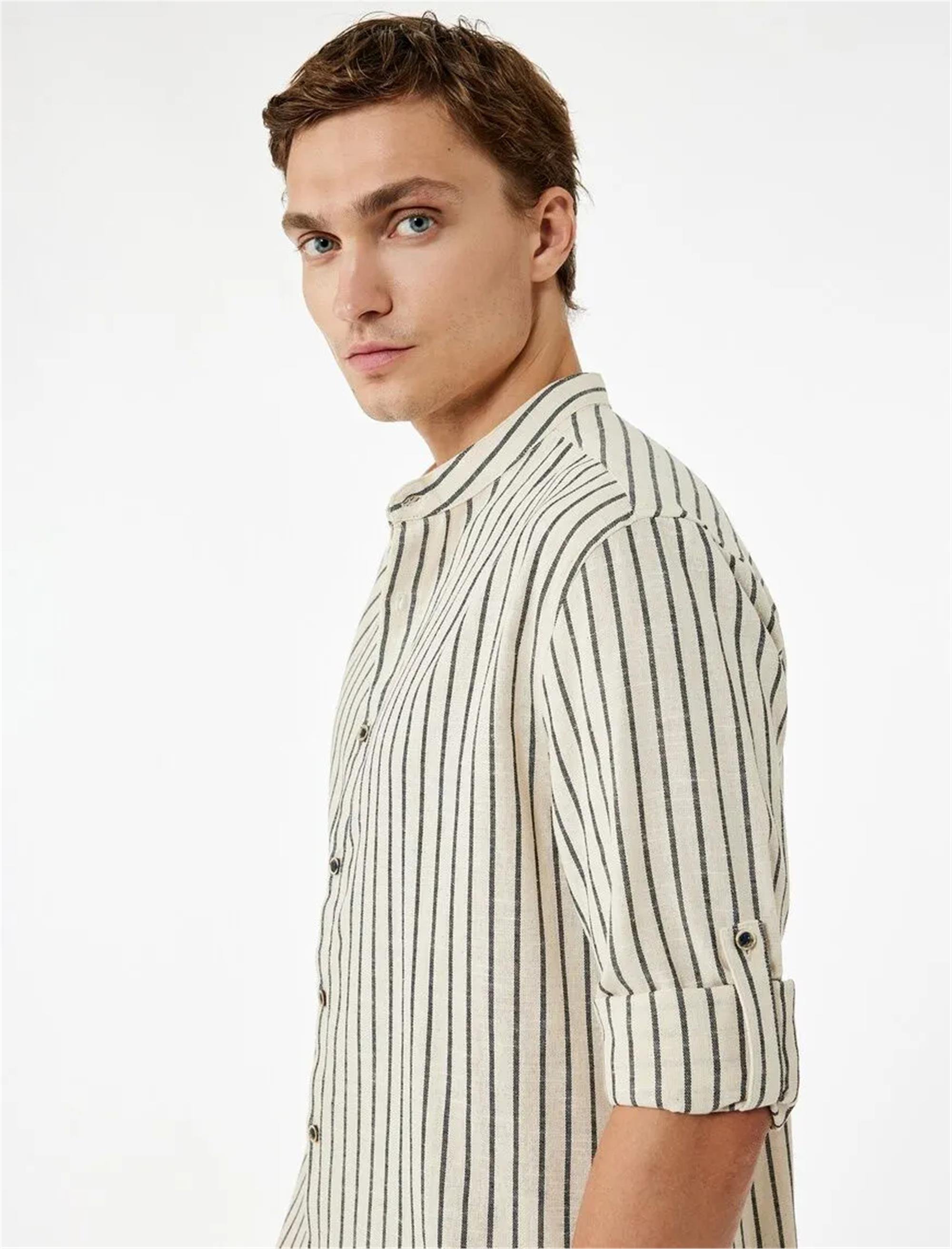 Koton K26 6Wam60102Hw 7S0 Lacıvert Cızgılı Erkek Pamuk Dokuma Uzun Kollu Gomlek (08.01.01.50571)