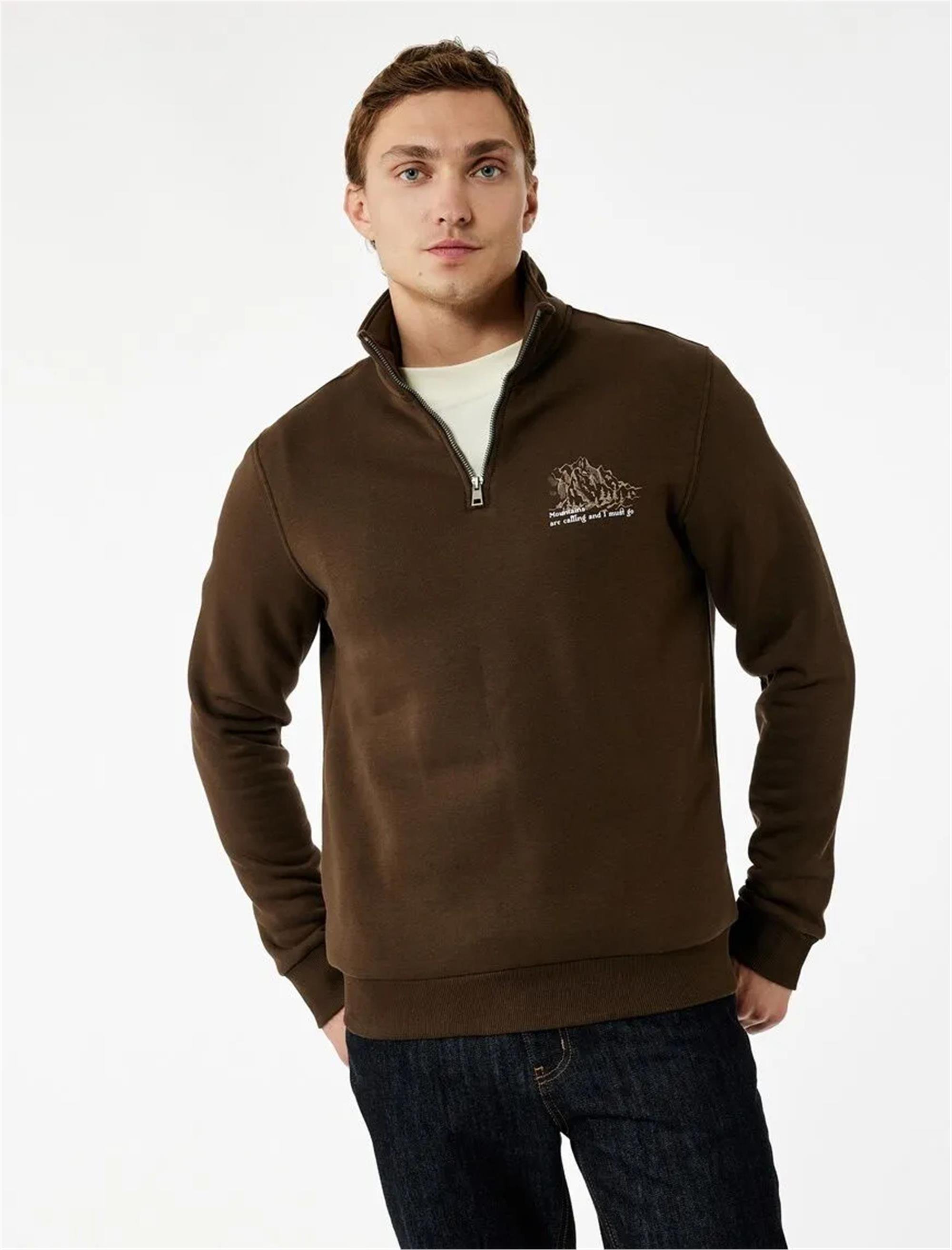 Koton K26 6Wam70035Mk 535 Kahverengı Erkek Pamuk Jersey Sweatshırt