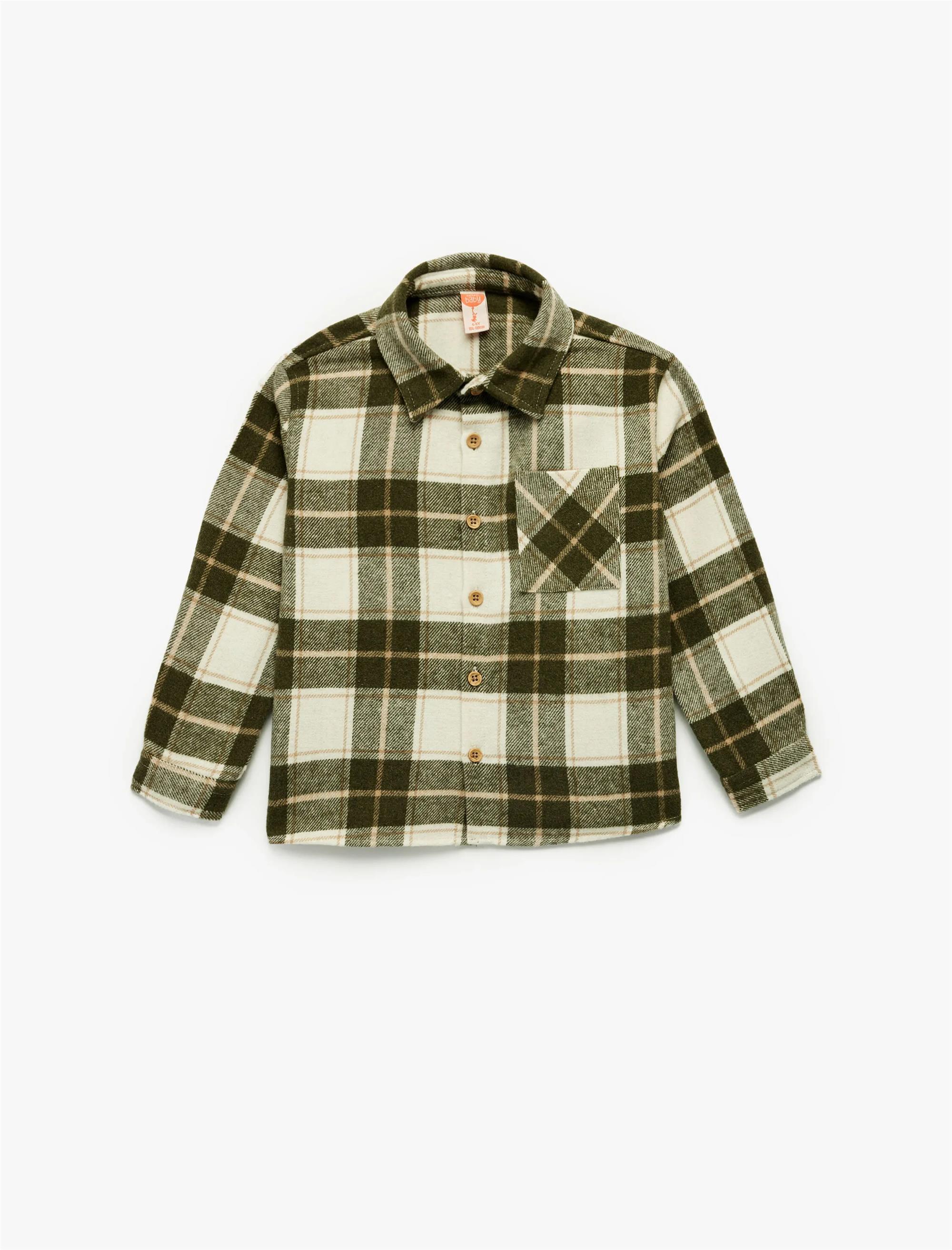 Koton K26 6Wmb60006Tw 0C1 Ekru Ekose Erkek Bebek Akrılık Dokuma Uzun Kollu Gomlek