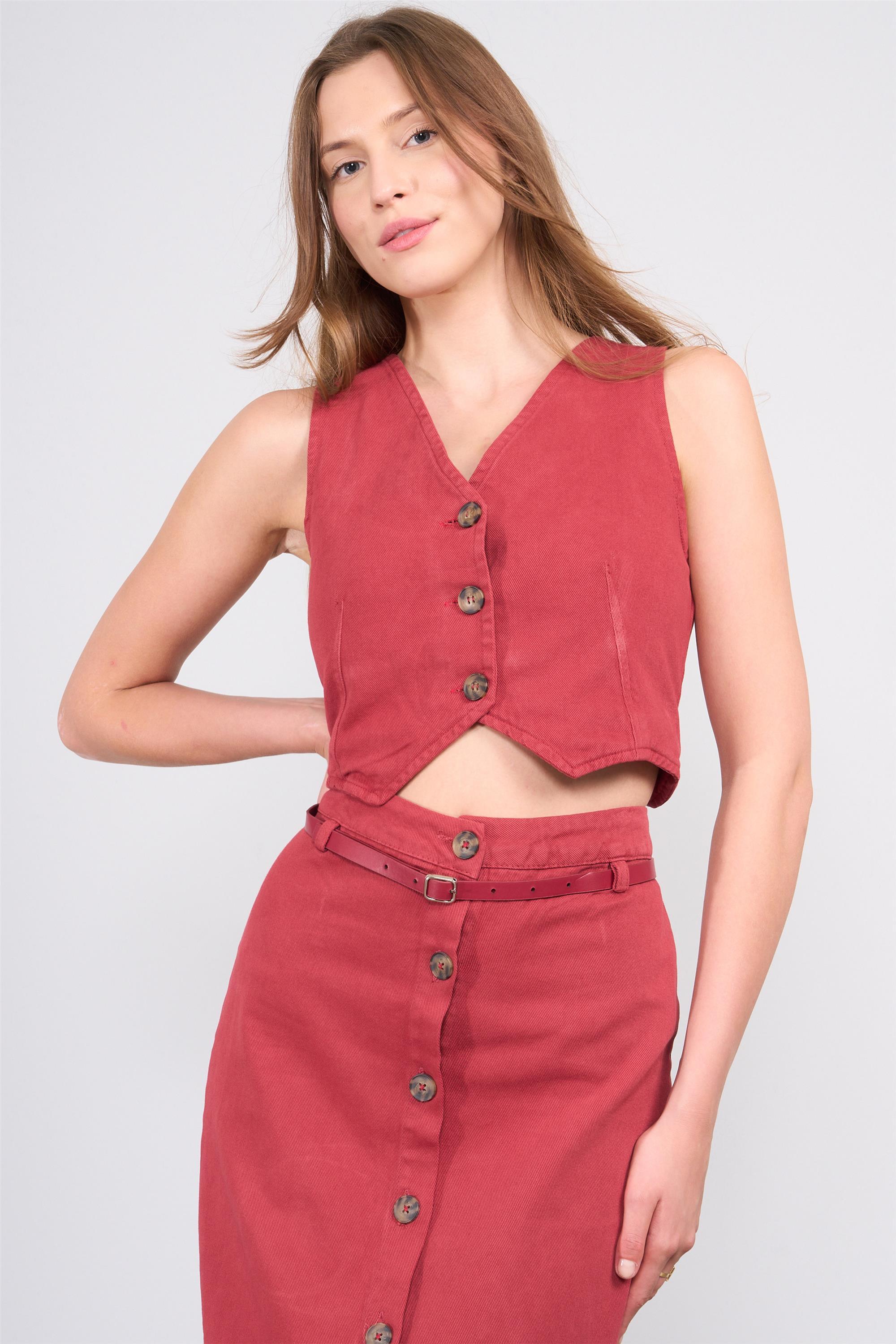Lefon Y25 220412 Pas Kufu Kadın Dugme Detaylı Kemerlı Yelek Ve Etek Takım (09.01.14.70182)