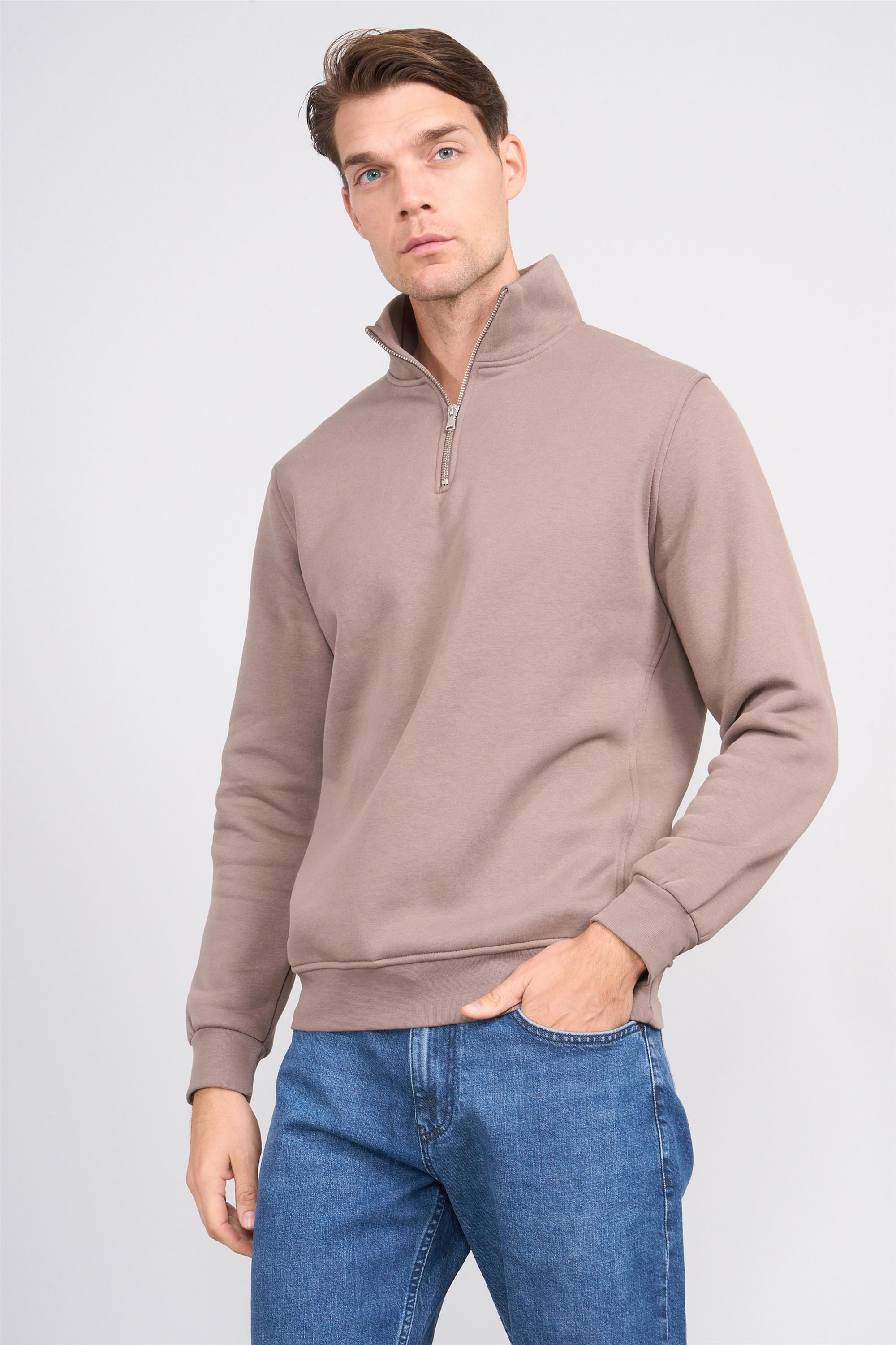 Mareteks 9509 Js Toprak Erkek Dık Yaka 3 Iplık Metal Fermuarlı Sweatshırt (08.01.17.50633)
