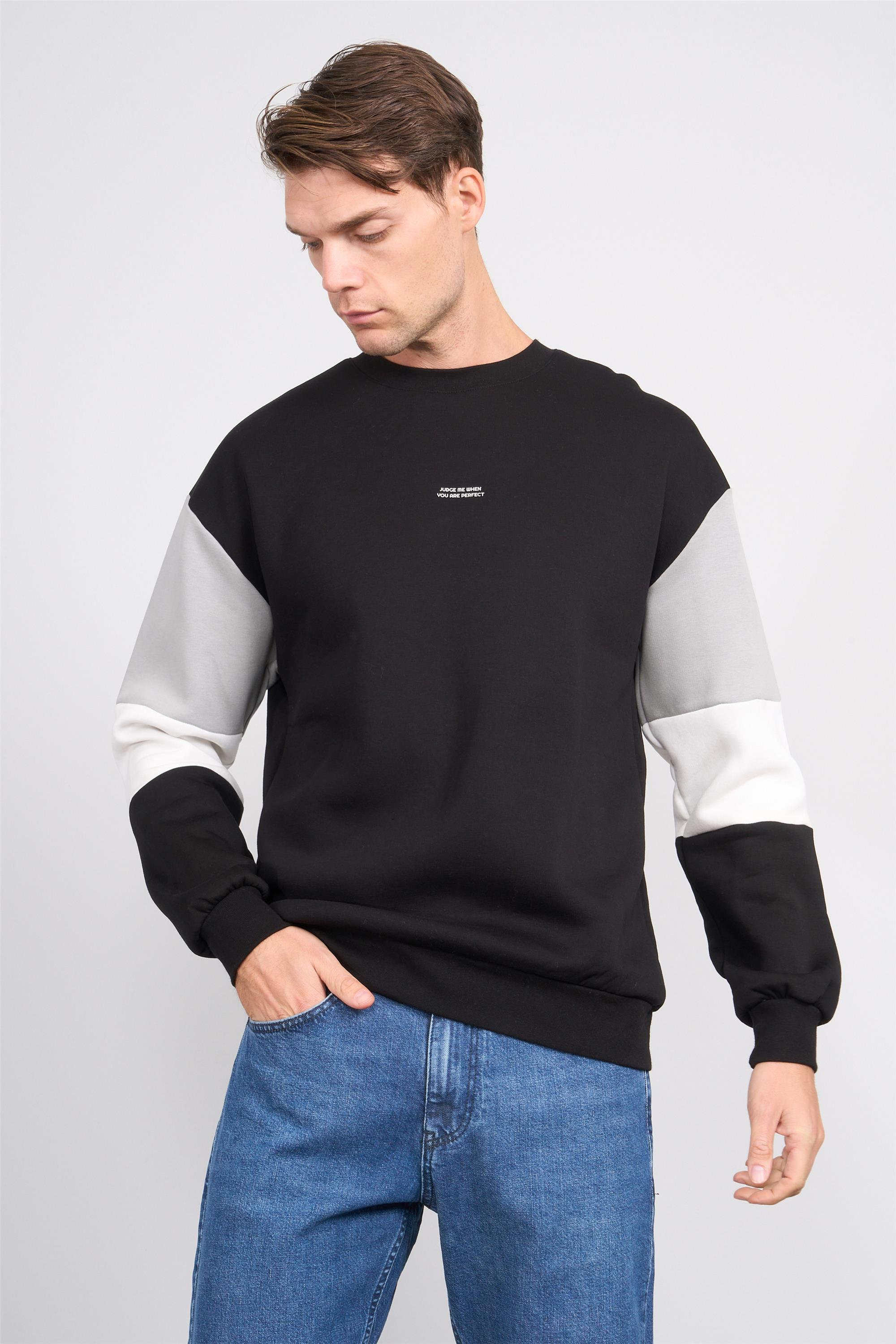 Mareteks 9554 Js Sıyah Erkek 0 Yaka Kol Parcalı Enjeksıyon Baskı 3 Iplık Sweatshırt (08.01.17.50670)