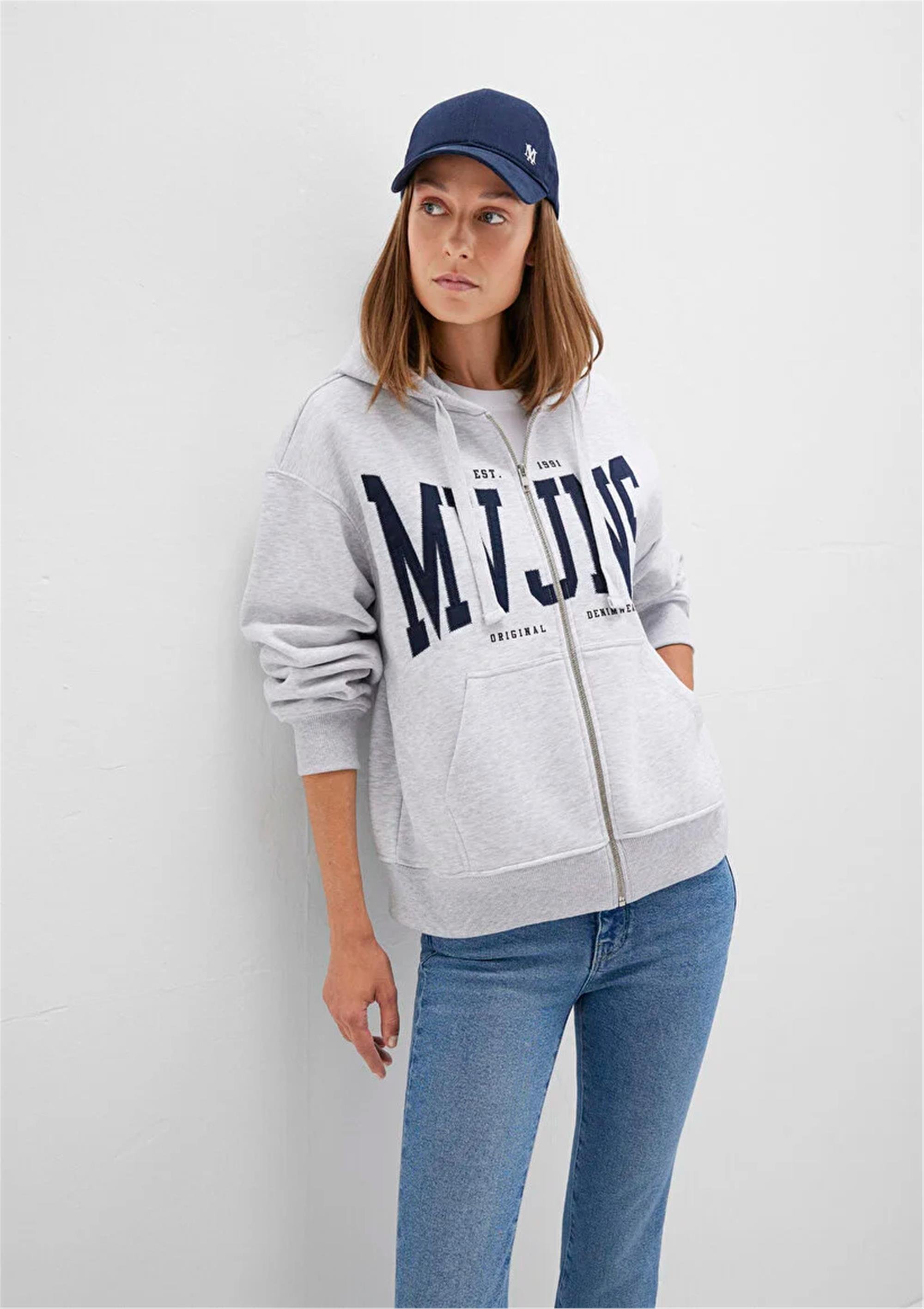 Mavı K26 M1S10421-80196 Acık Grı Melanj Kadın Mavı Logo Baskılı Tam Fermuarlı Oversıze Sweatshırt (09.01.23.50347)