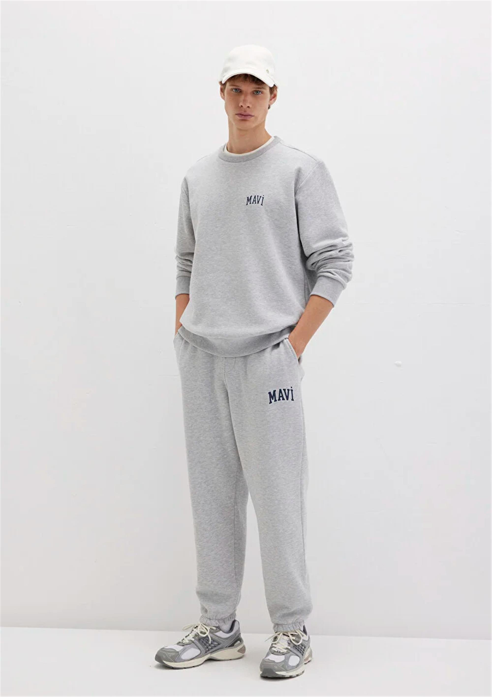Mavı M0010207-80018 Grı Melanj Erkek Mavı Baskılı Bol Kesım Esofman Alt