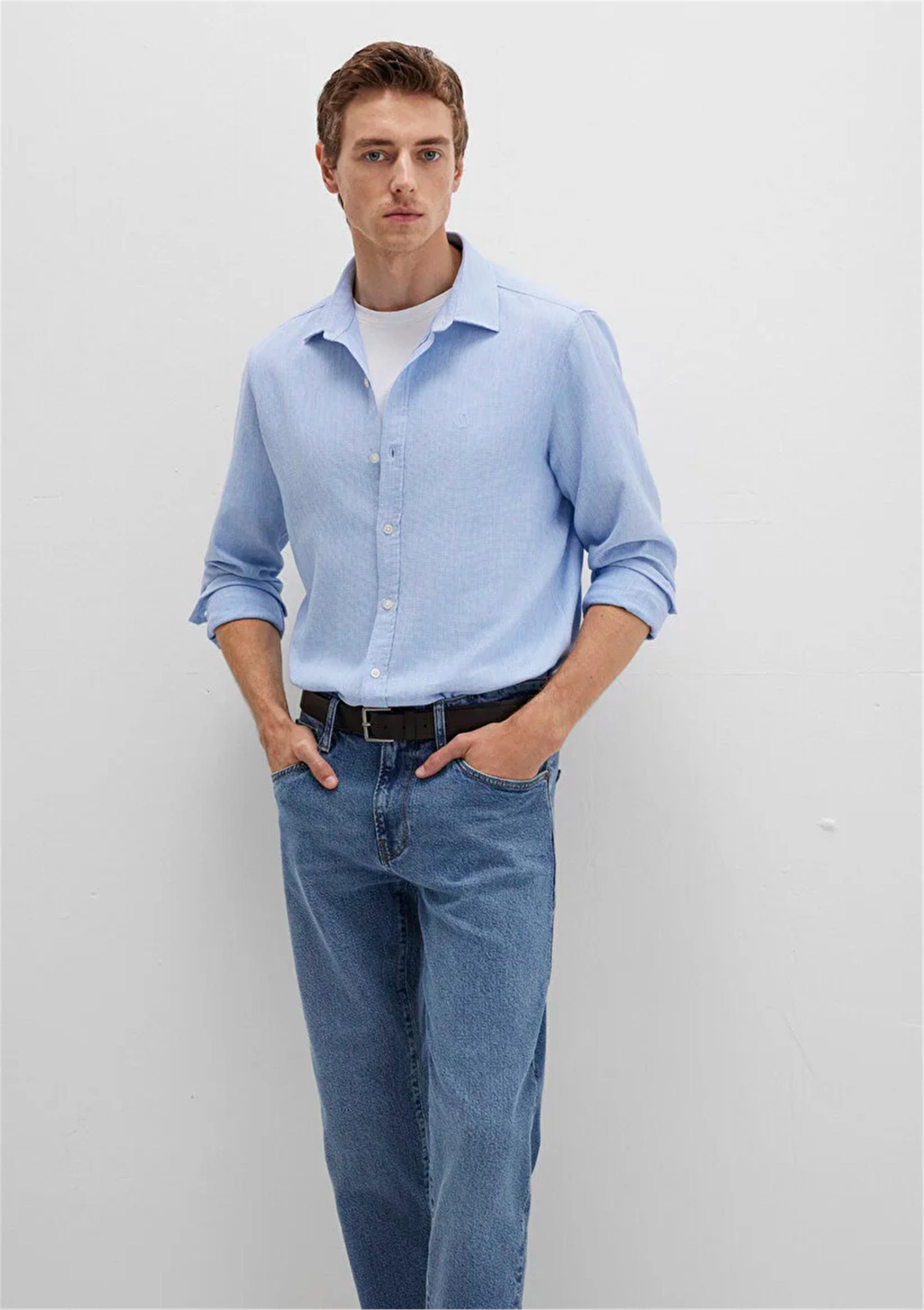 Mavı M0211656-88654 Fıyort Mavı Erkek Uzun Kollu Dar Kesım Duz Gomlek (08.01.01.50548)