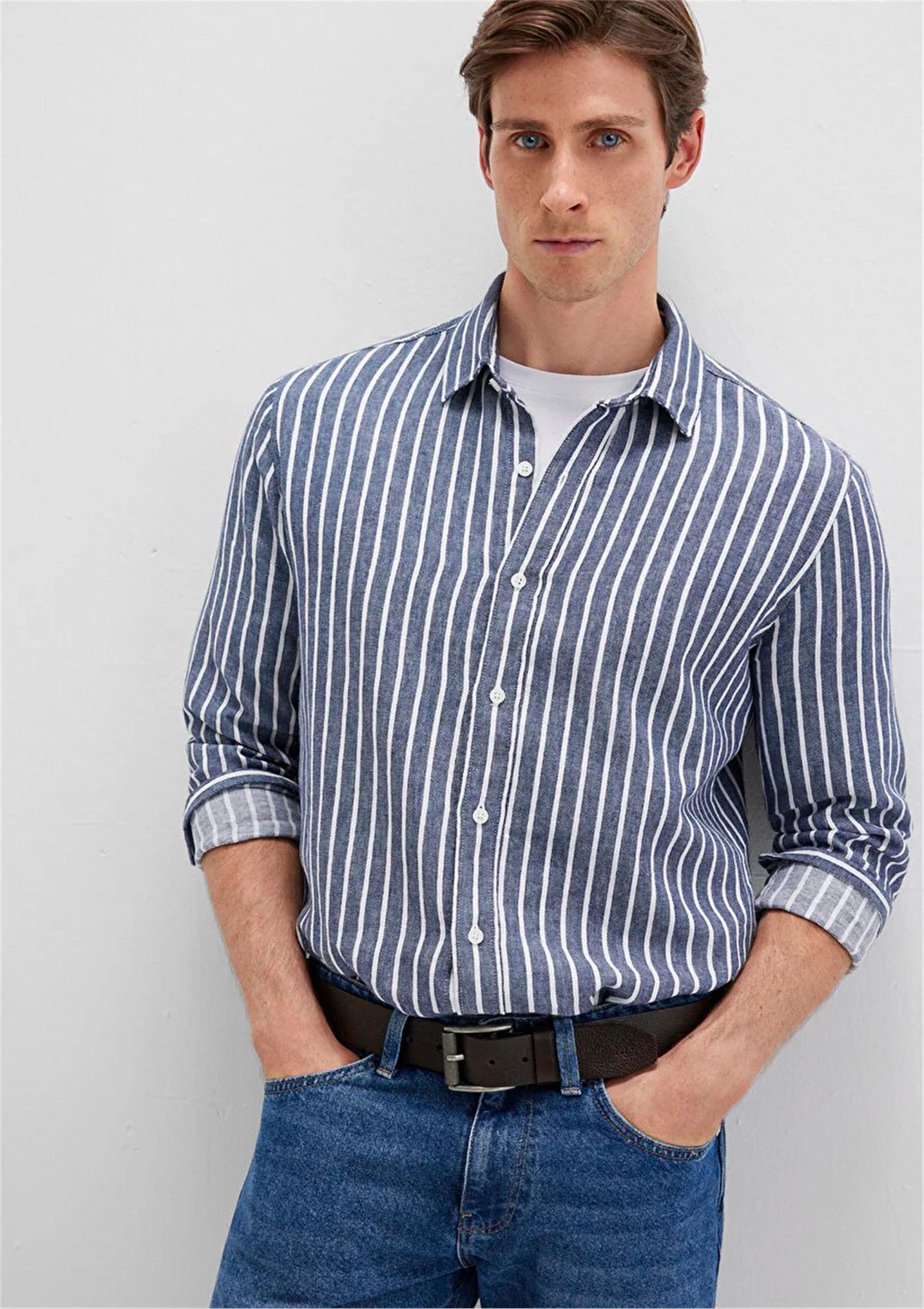 Mavı M0211698-90917 Dark Denım Strıpe Erkek Uzun Kollu Keten Karısımlı Cızgılı Slım Gomlek (08.01.01.50549)