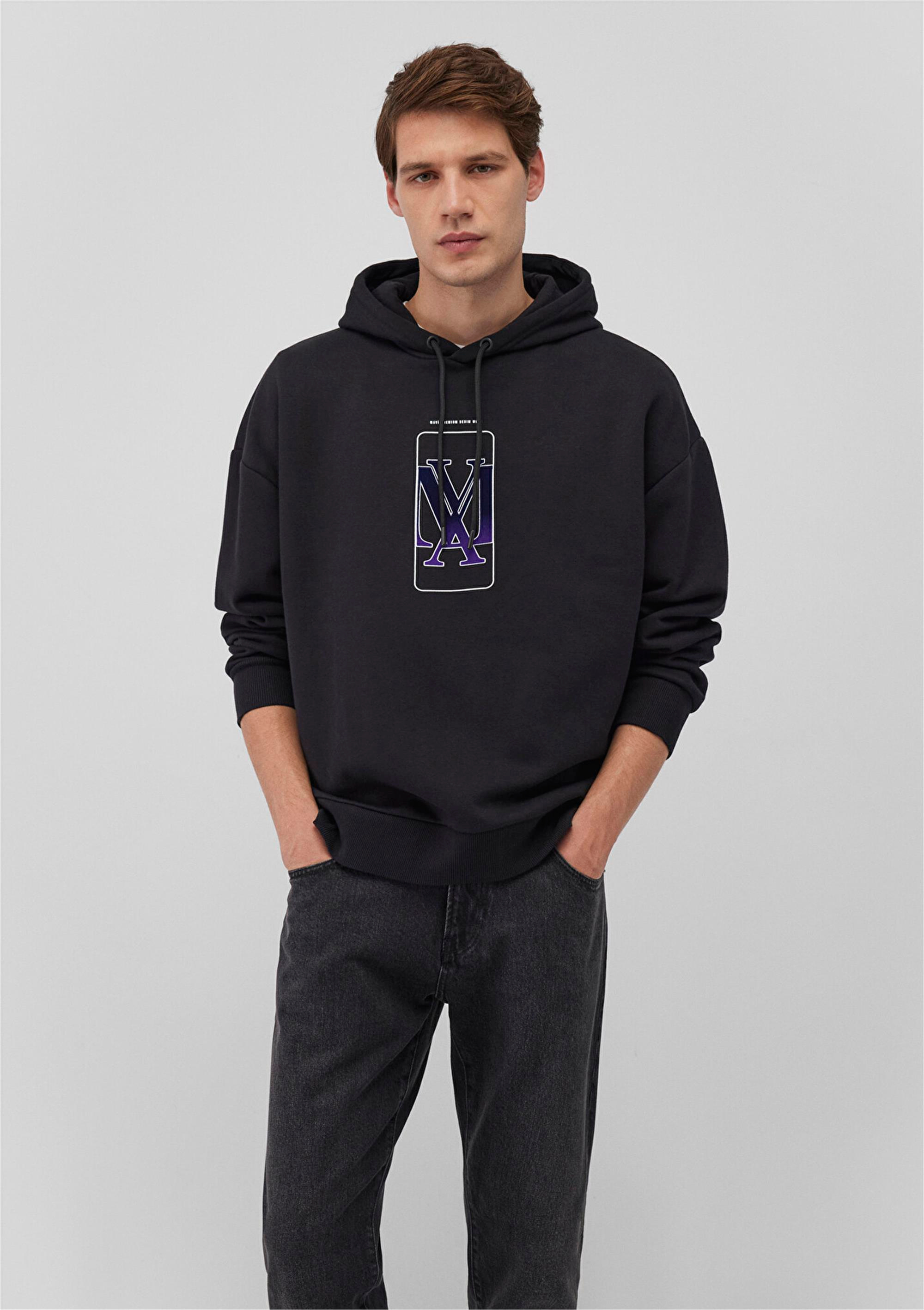 Mavı M0610958-900 Sıyah Erkek Oversıze Mavı Logo Baskılı Kapusonlu Sweatshırt