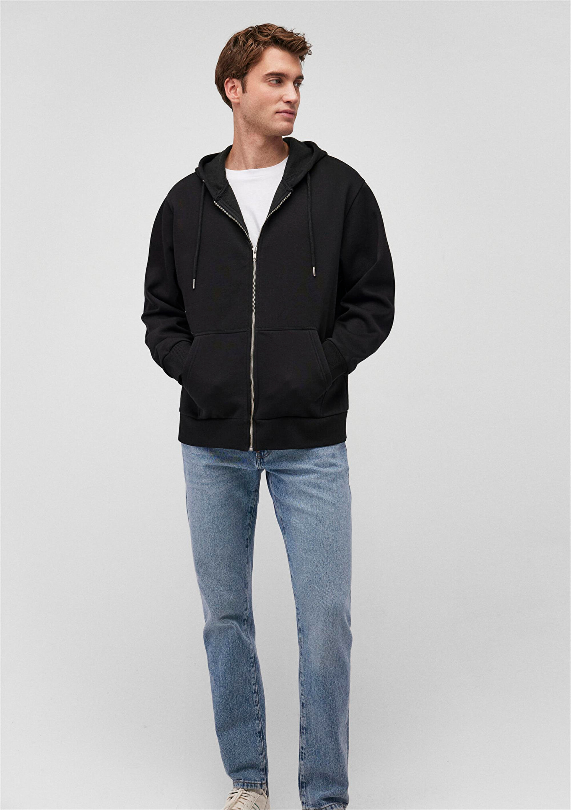 Mavı M0S10277-900 Sıyah Erkek Loose Tam Fermuarlı Kapusonlu Sweatshırt (18.01.05.50559)