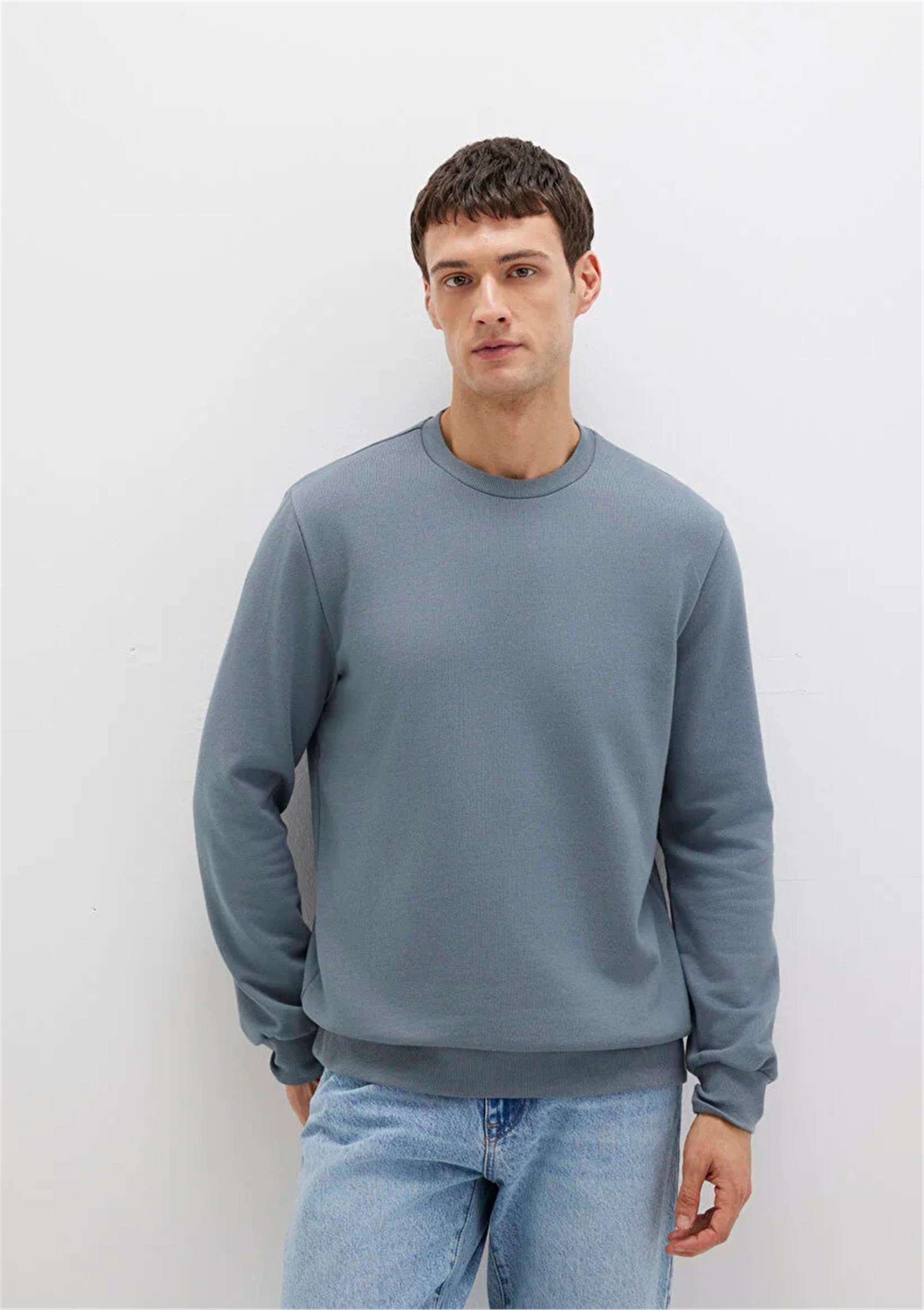Mavı M0S10457-80889 Fırtına Grı Erkek Bısıklet Yaka Slım Basıc Sweatshırt