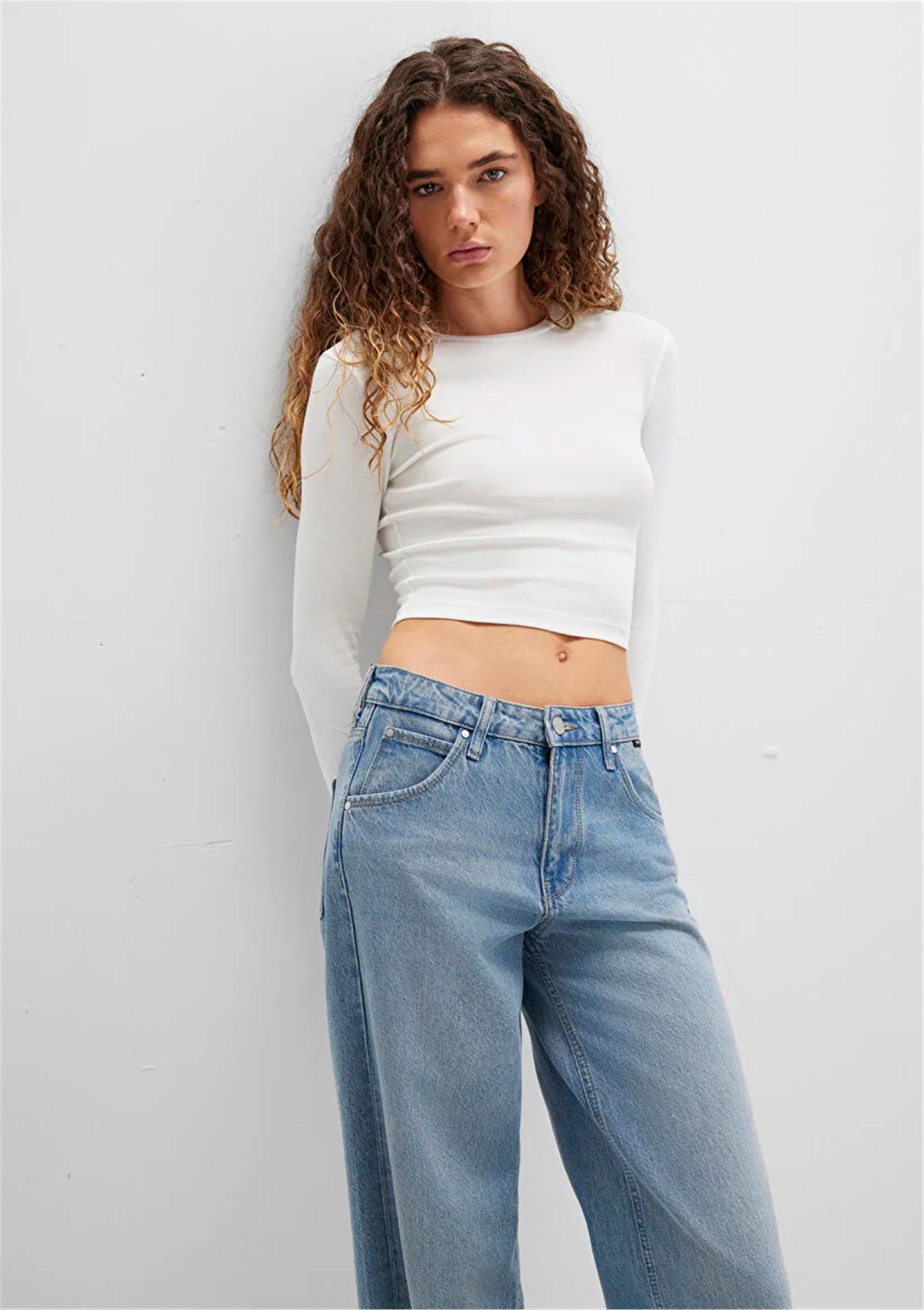 Mavı M1612822-70057 Kırık Beyaz Kadın Uzun Kollu Basıc Crop Sweatshırt