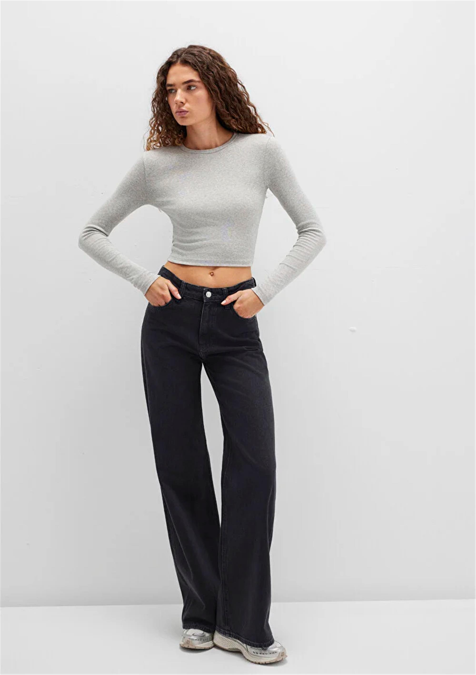 Mavı M1612822-88467 Acık Grı Melanj Kadın Uzun Kollu Basıc Crop Sweatshırt