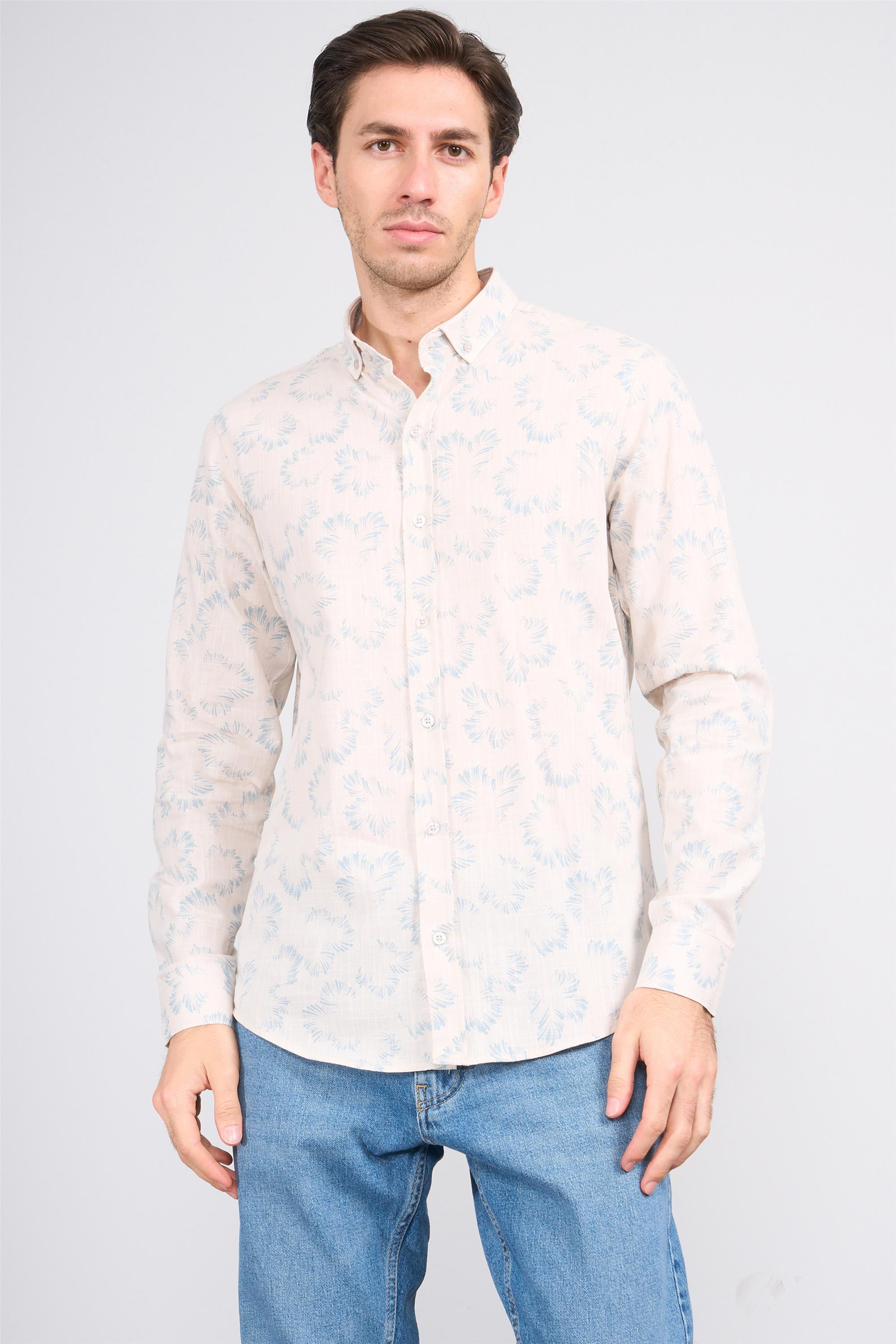 Mentality 206 Erkek Uzun Kol Desenli Slimfit Cepsiz Gömlek Bej 1-3 (08.05.01.82325)