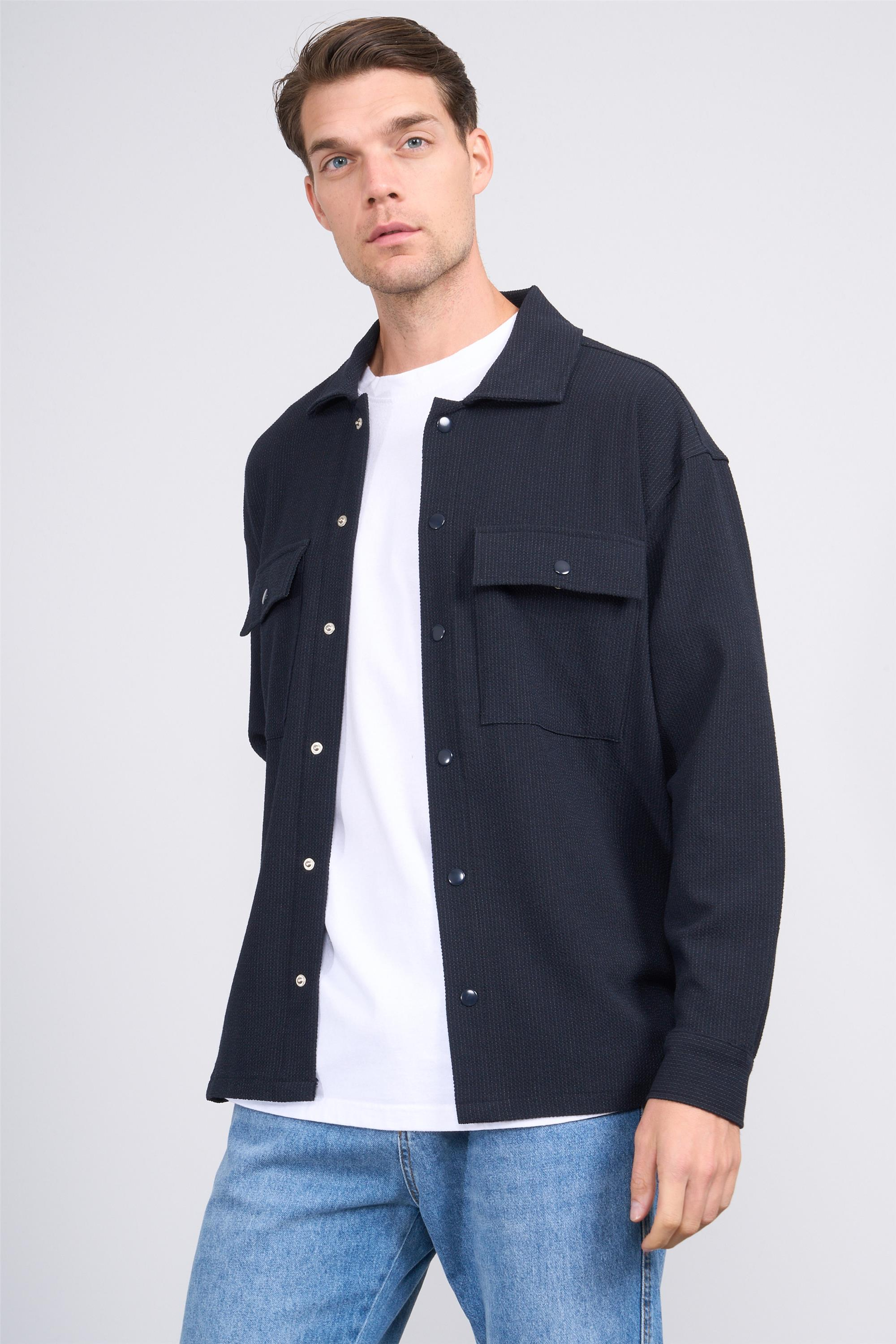 Mentality 2332 Erkek Uzun Kol Çizgili Overshirt Gömlek Lacivert (08.05.01.82114)