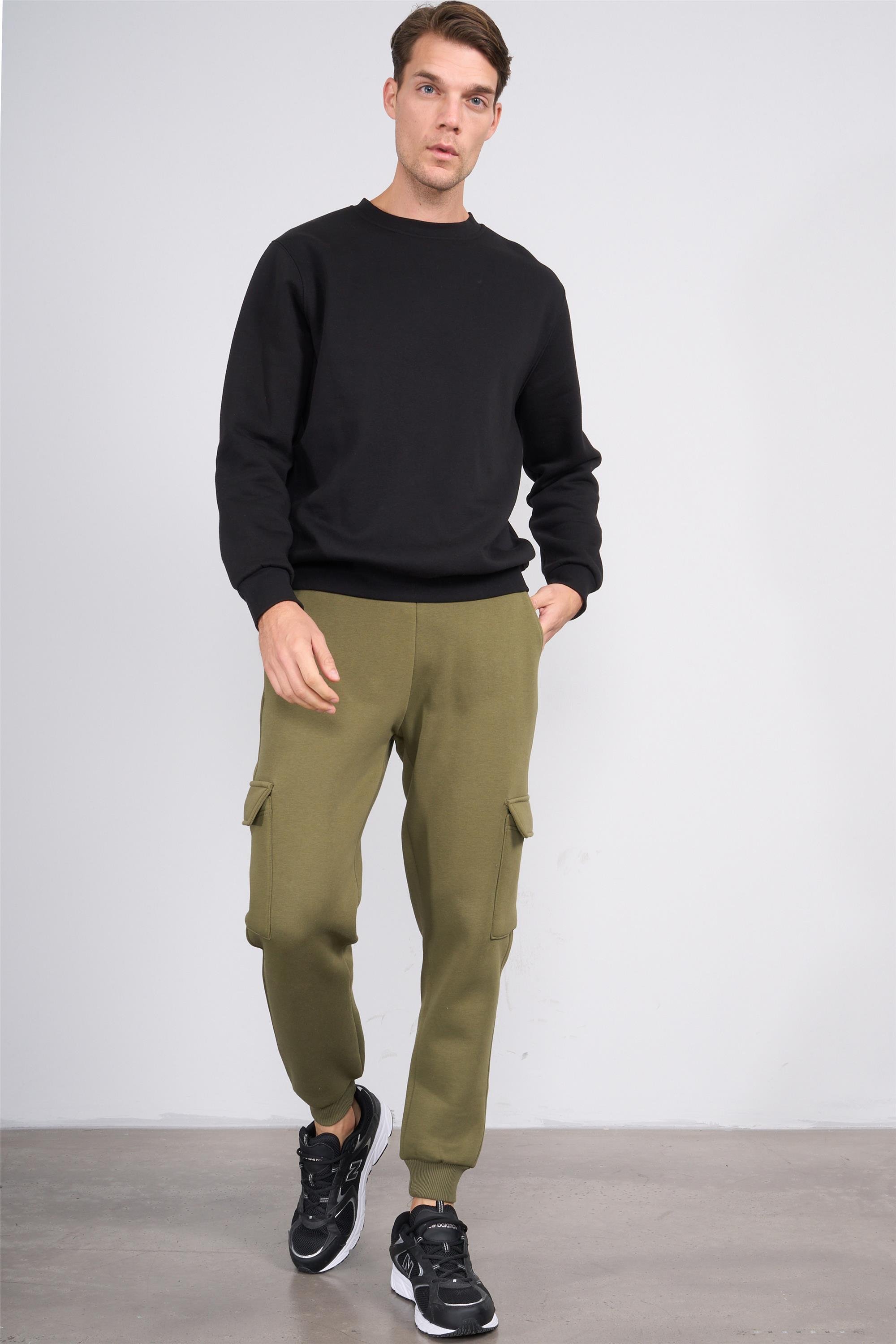 Mentality 823 Erkek 3 İplik Kargo Cep Eşofman Alt Haki